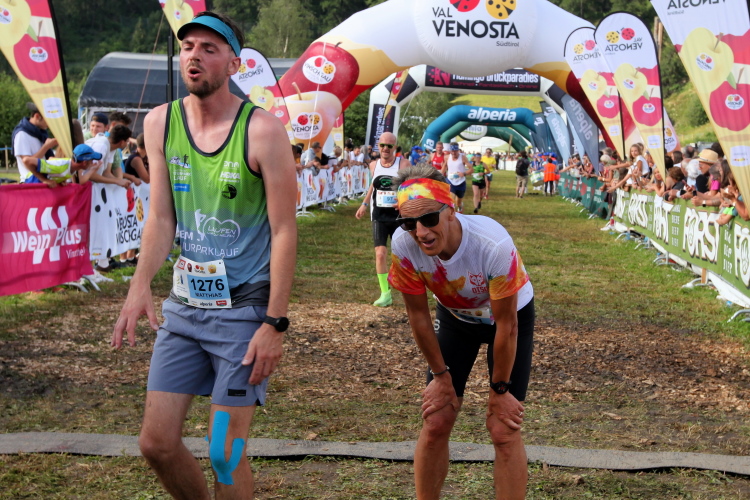 Als nach gut einer dreiviertel Stunde die Ersten den legendären, im Reschensee versunkenen Kirchturm erreichen, laufen sie wie in einer Arena die letzten zweihundert Meter ins Ziel. Auch als die Lorbeeren verteilt sind, ändert sich daran nichts. Es wird eher noch lauter, als die Fans ihre Helden empfangen.