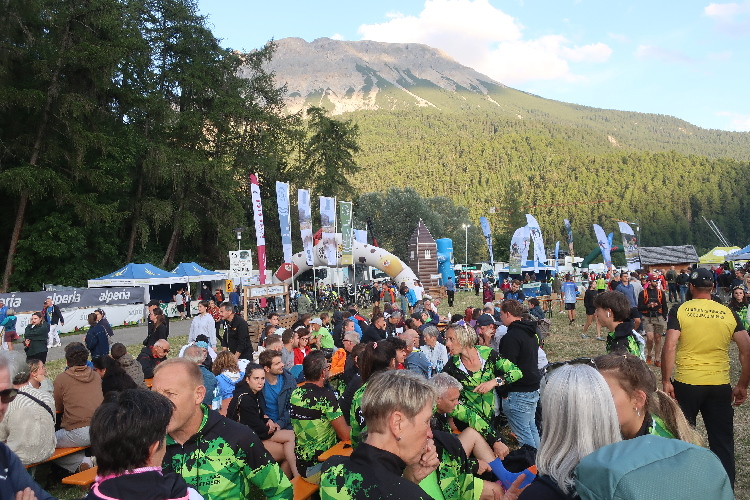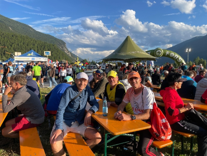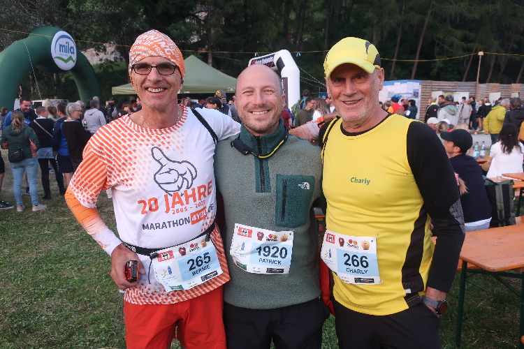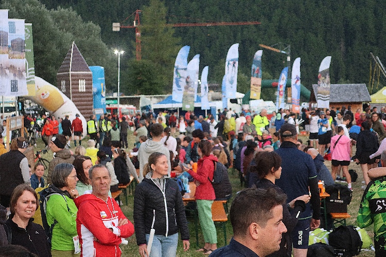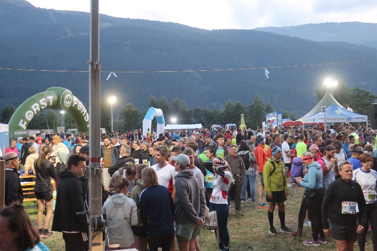 Patrick und ich lassen es ruhig angehen. Mit M4Y-Bernie und Charly, langjährige Laufkumpels, treffen wir uns zum Ratsch im Biergarten und so vergeht die Zeit im Fluge. Kaum verschwindet die Sonne um kurz nach 20 Uhr hinter den westlichen Bergkämmen, wird es sofort frischer auf dem Gelände. Dunkle Wolkenbänke hüllen das ferne Ortlermassiv im Süden ein, nachdem uns das Weiß seiner Gipfelregion den ganzen Tag verheißungsvoll entgegen leuchtete. Und Zeit wird es, uns laufbereit zu machen.