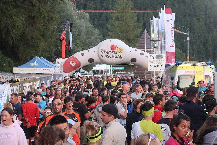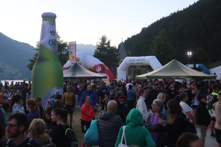 Wie viele andere ziehen wir uns auf dem nun vollen Parkplatz um. Zurück auf dem Festgelände merkt man, wie sich hier mittlerweile die Läufermassen ballen. Immerhin 3.500 der insgesamt 4.000 Teilnehmer sind für den Nachtlauf gemeldet, etwa zur Hälfte in der Version eines wettkampfmäßigen Wertungslaufs, zur Hälfte in der „Just for Fun“-Kategorie, die einen von der in Italien obligatorischen Vorlage eines ärztlichen Attests für Wettkämpfe befreit. Die Zeit wird natürlich für alle gleichermaßen gemessen. Dass sich so viele für „Just for Fun“ entscheiden, belegt eindrücklich, welchen Stellenwert hier eben der schlichte „Fun“ hat.