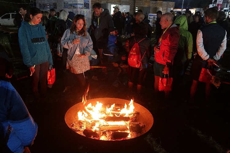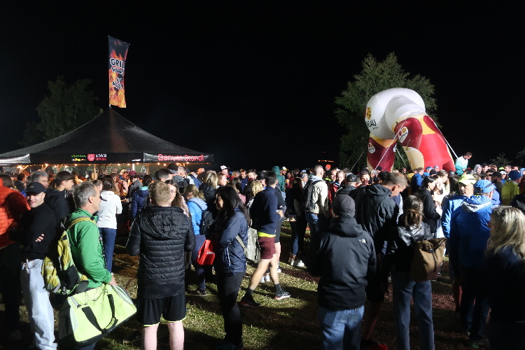 An den Parkplatz schließt sich die nicht minder weitläufige Camper-Zone an, die mit Wohnmobilen und Zelten bereits gut gefüllt ist. Gerade einmal 30 € zahlt man hier pro Stellplatz, und das von Freitag bis Sonntag. Vorbei an der Camper-Zone ist dann auch schon das eigentliche Festgelände erreicht. Gleich zu Beginn: Die Ausgabestellen für die Startnummer. 50 € Startgeld für 15 km mögen nicht als Schnäppchen erscheinen. Aber die praktische wie chice Stirnlampe und die metallene Trinkflasche, die es heuer als Startergeschenk zur Startnummer dazu gibt, machen das mehr als wett.