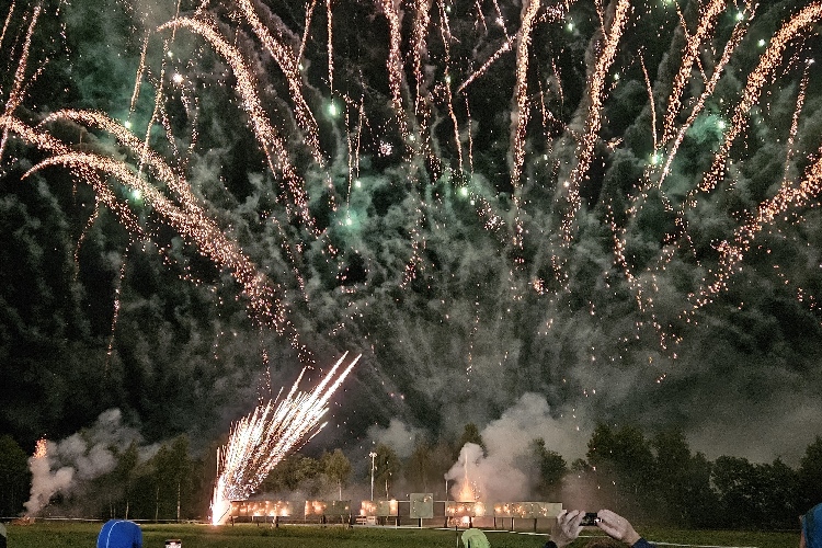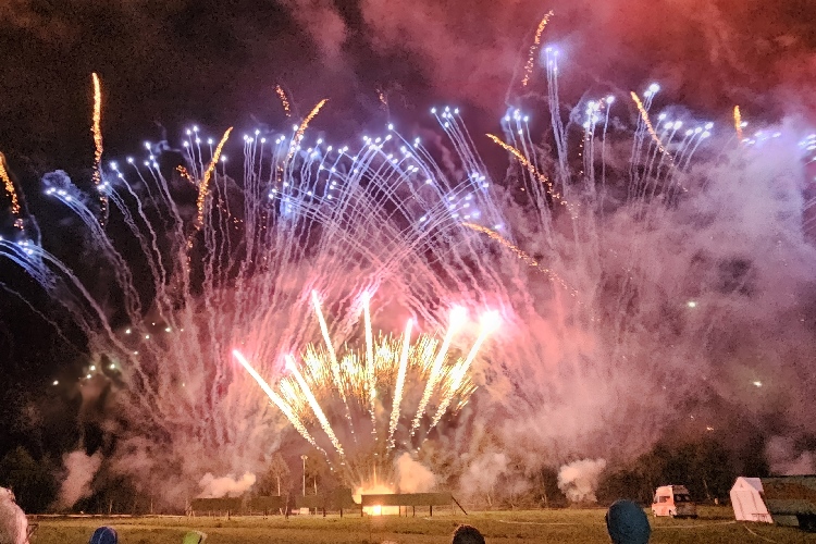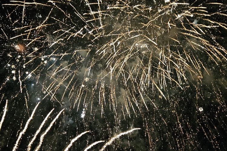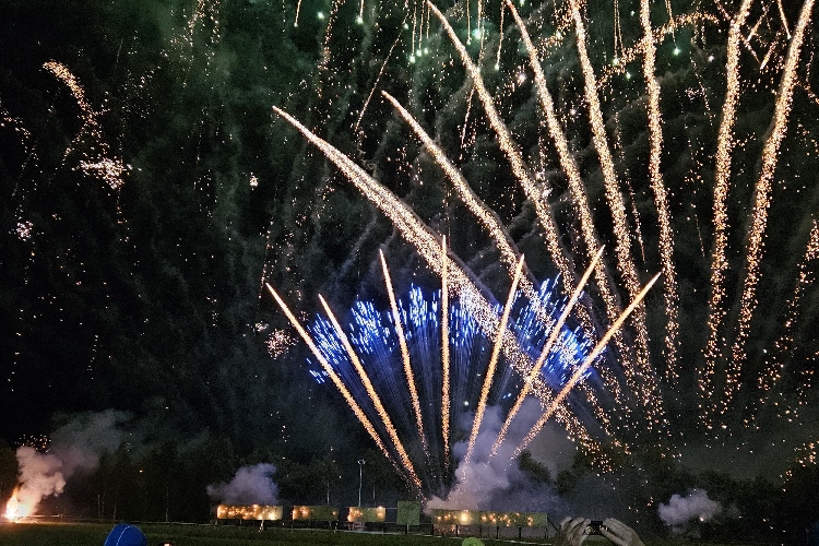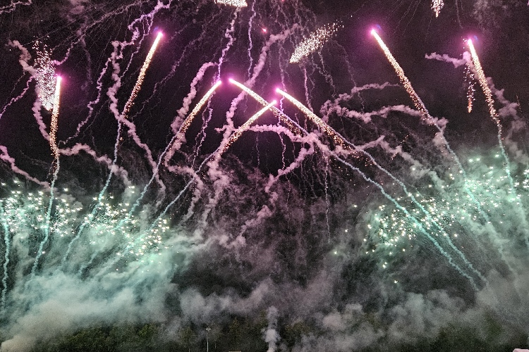 Es zischt, pfeift und kracht, blitzt, blinkt und leuchtet. Selten habe ich ein so opulentes, mitreißendes, ja begeisterndes Feuerwerk erlebt. In mehrere Abschnitte ist es unterteilt, jeweils von wechselndem Sound begleitet. Und als ich schon denke: das war es jetzt, krachen die nächsten Salven und verzaubern den Himmel ein weiteres Mal in einer Licht- und Farbenorgie.