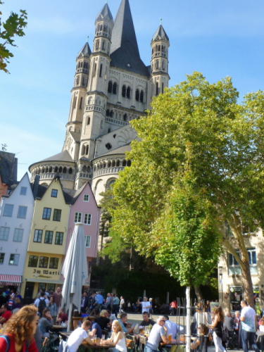 Dann will ich noch etwas von der Altstadt sehen. Ich lasse mich am Rhein bis zum Rheinauhafen mit dem Schokoladenmuseum treiben, dann laufe ich entlang der früheren Stadtmauer bis zum Rudolfsplatz. Zwei, drei Stunden dauert mein Spaziergang, die Füße maulen. Bei 25 Grad Temperatur ist man kurz vor einem Schweißausbruch.