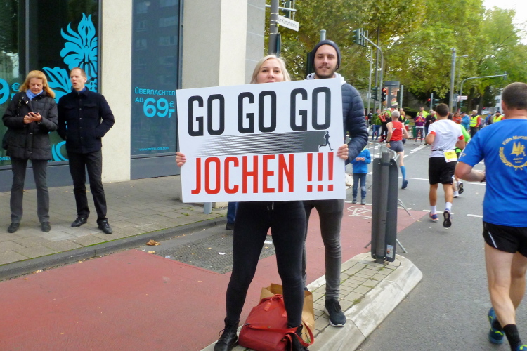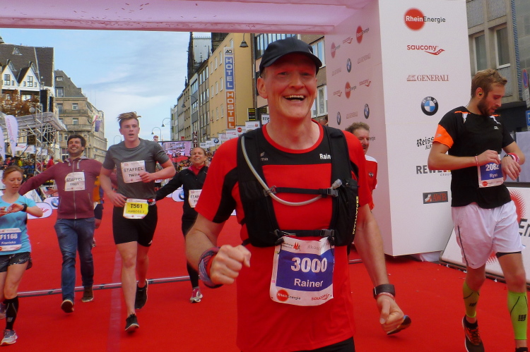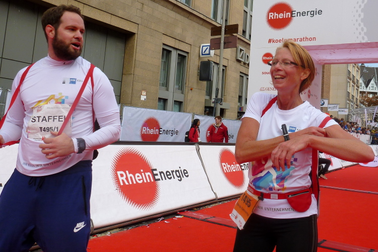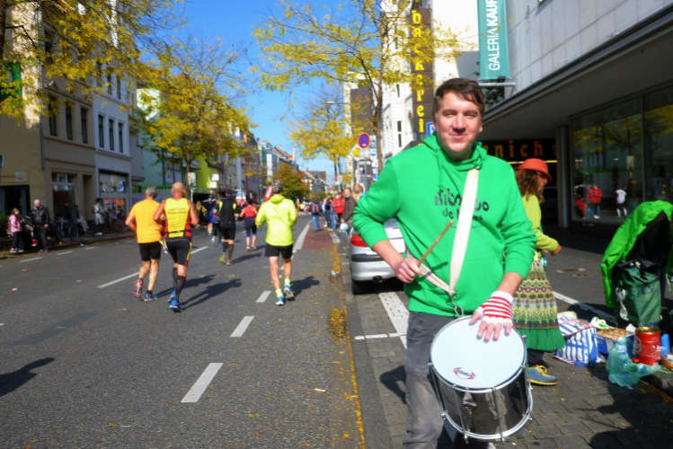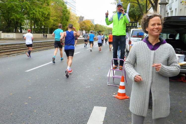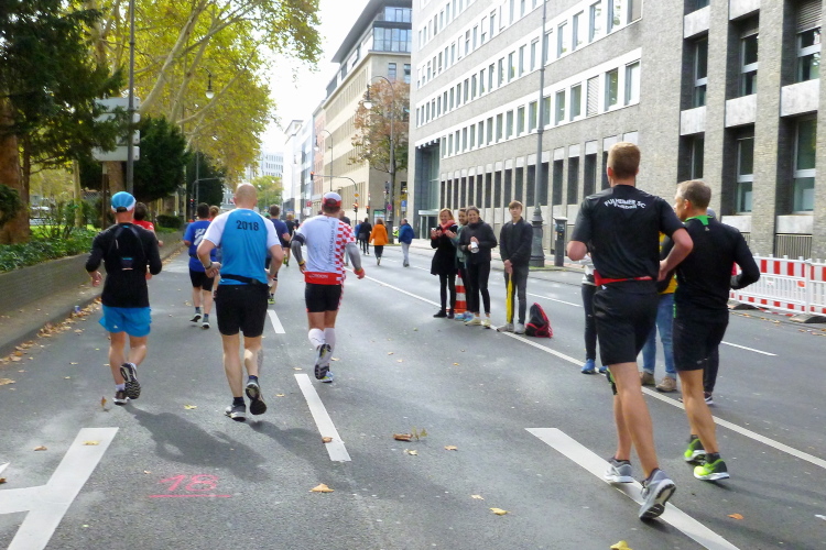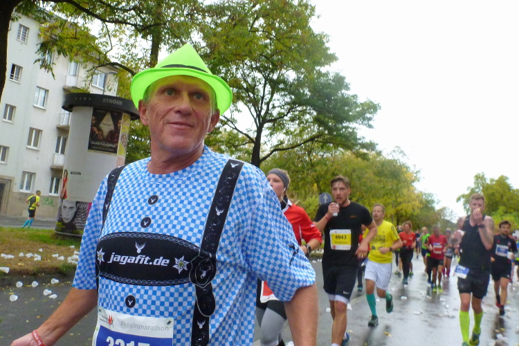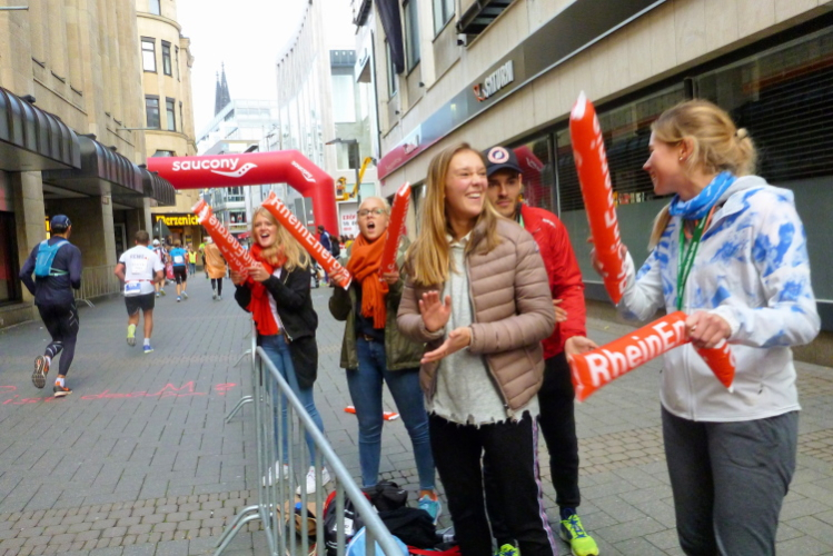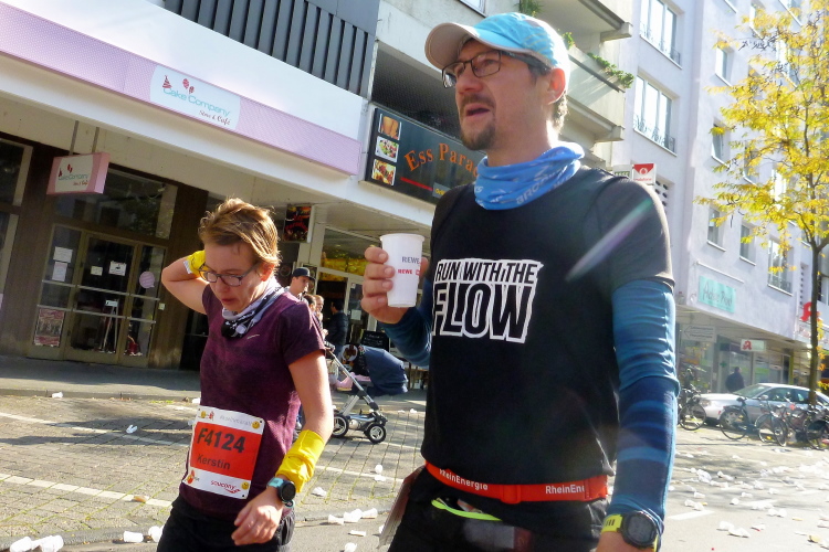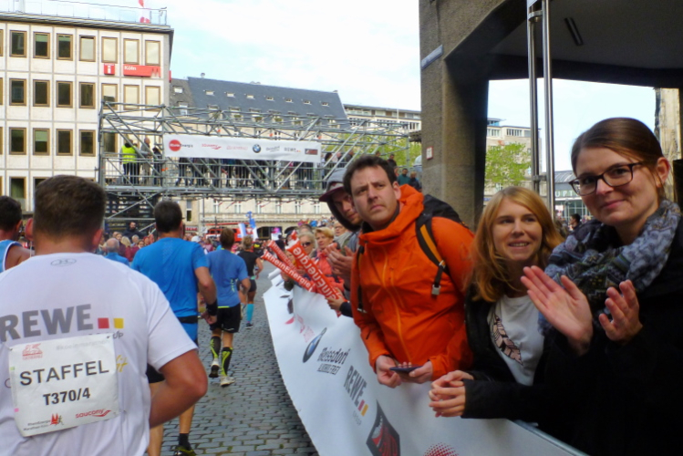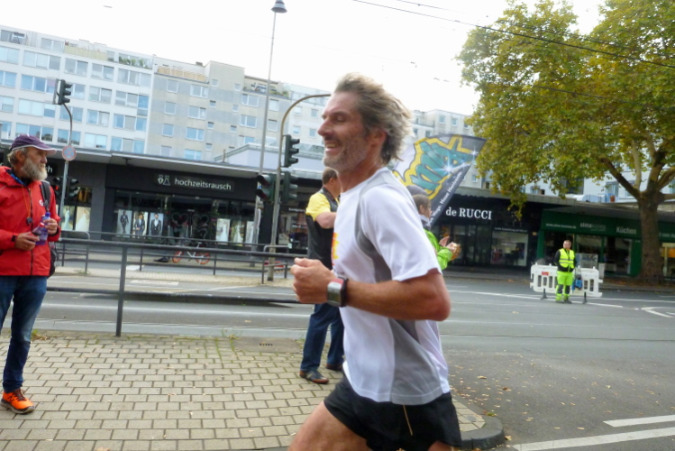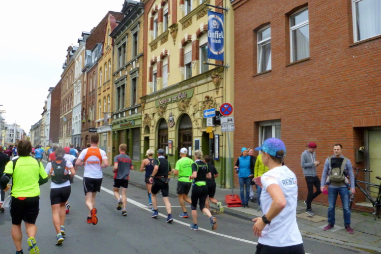 Was bleibt in meiner Erinnerung: Eine schnelle Strecke, auf der ersten Hälfte vielleicht nicht ganz so viele Zuschauer, was sicher dem kühlen Wetter geschuldet war. Aber dann haben die Kölner aufgedreht und Gas gegeben. Wie zum Beispiel der Zecher an der Eckkneipe, der uns zuruft, wir sollen durchhalten, er würde es ja auch tun, und sich dabei die Wampe mit beiden Händen hält.