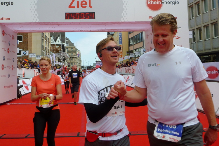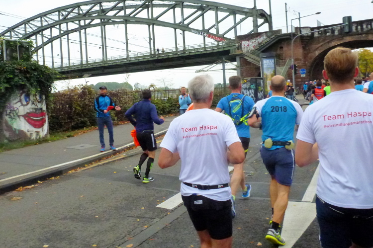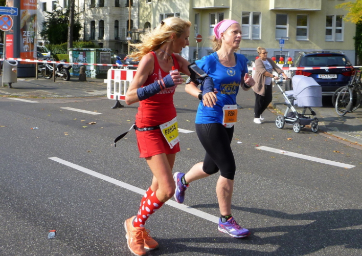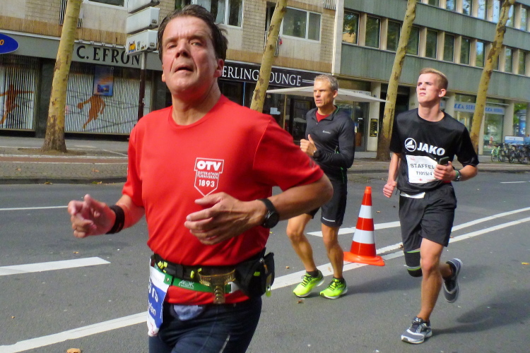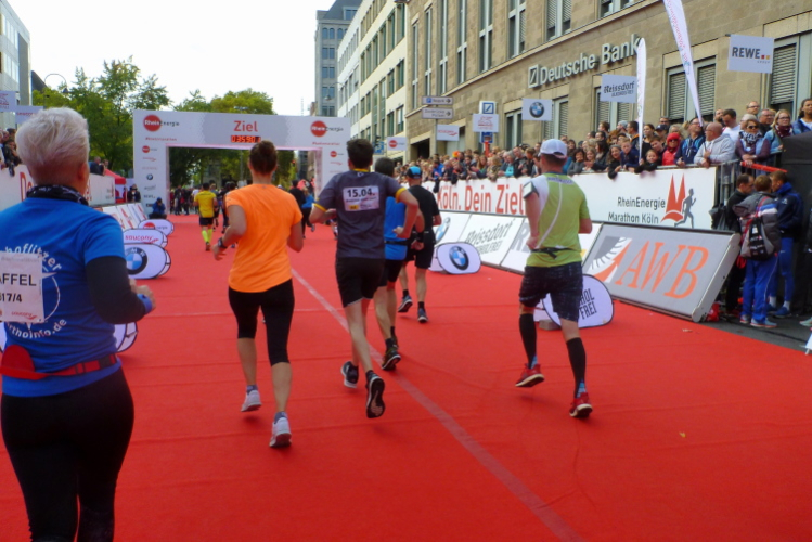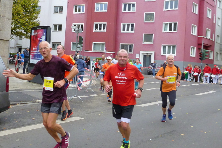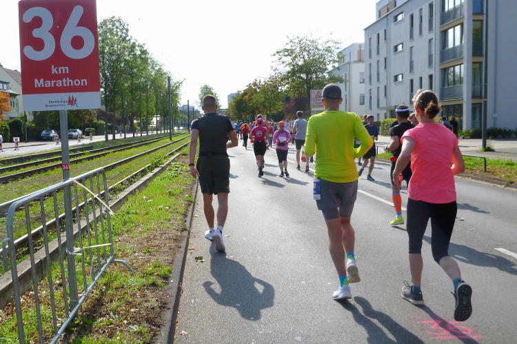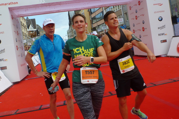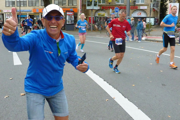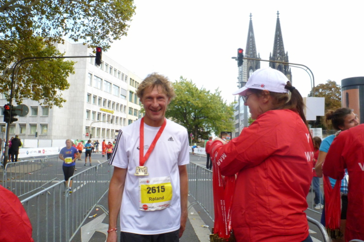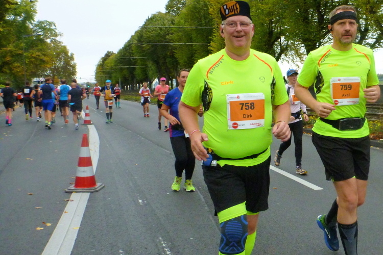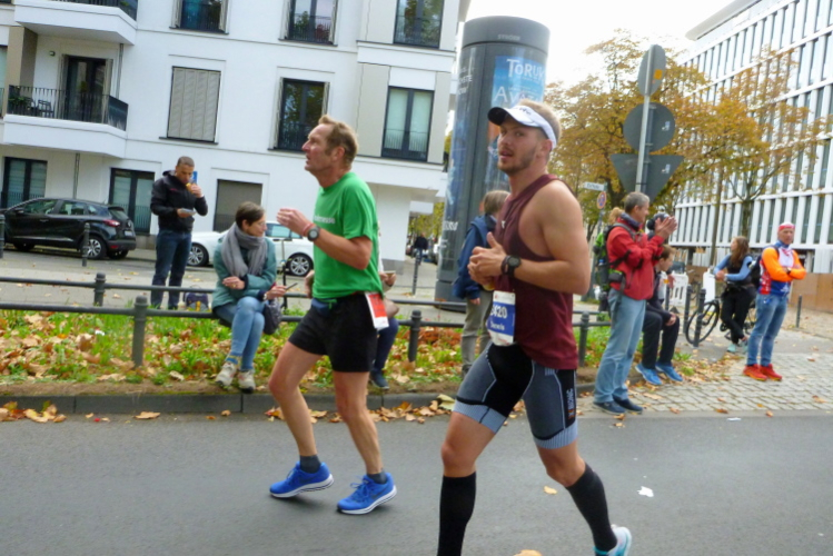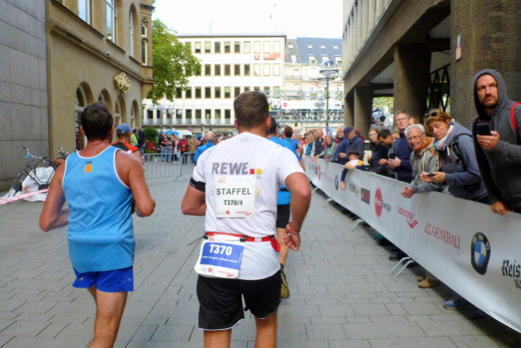 Was bleibt in meiner Erinnerung: Eine schnelle Strecke, auf der ersten Hälfte vielleicht nicht ganz so viele Zuschauer, was sicher dem kühlen Wetter geschuldet war. Aber dann haben die Kölner aufgedreht und Gas gegeben. Wie zum Beispiel der Zecher an der Eckkneipe, der uns zuruft, wir sollen durchhalten, er würde es ja auch tun, und sich dabei die Wampe mit beiden Händen hält.