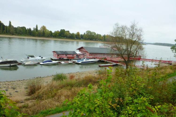 Der erste Kilometer ist am Heumarkt, ein zentraler Platz in der Altstadt, geschafft. Ich sehe das Brauhaus zur Malzmühle und bin gespannt, ob der Bayer in Köln sein eigenes Manna bekommt. Mit einem Schlenkerer laufen wir nun an den Rhein heran. Rund fünf Kilometer geht es entlang des „Vater Rhein“. Am Malakoffturm (um 1850 zur Sicherung des Rheinauhafen errichtet) vorbei geht es in Richtung Süden. Die ehemalige Hafenanlage hat seinen eigenen Zweck im Laufe der 1950er Jahres verloren. Das Gebiet wird heute als Wohn-, Büro- und Gewerbeanlage benutzt. Hier liegt an der Wasserlinie des Schokoladenmuseum, das mir Dirk als Besuchstipp vorgeschlagen hat. Daneben sehen wir das ehemalige Preußische Zollamt. Das Olympiamuseum ist auch fußläufig erreichbar. Ebenso die Kranhäuser, drei große, architektonisch eigenwillig gebaute Gebäude. Ich kann den Baustil gar nicht beschreiben.