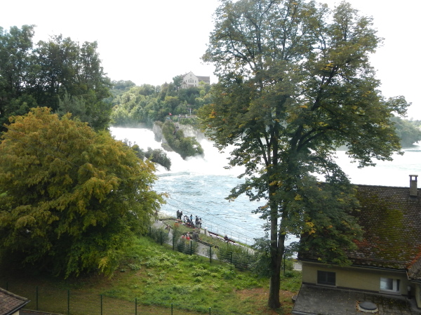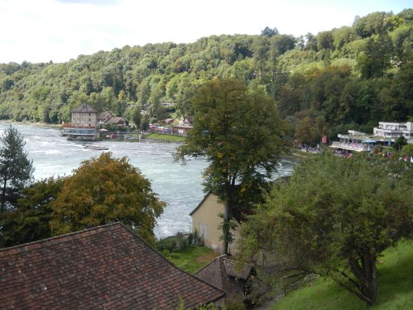 Für ganz Müde gibt es einen Shuttlebus zurück zur Garderobe. Wenn man zu Fuß die Steigung auf sich nimmt, erhält man einen schönen Ausblick über das Rheinfallbecken. Den lasse ich mir auch nach 26 Jahren Heimvorteil nicht nehmen.