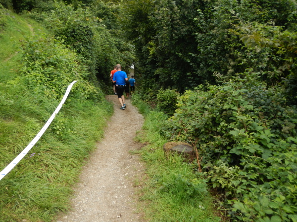 Der Überlieferung nach hat es in der Folge einmal ein unfreiwilliges Bad im Rhein gegeben. Das wäre mir allemal lieber als das plötzliche Verschwinden in den Brombeerranken, das ich weiter vorne beobachte. Drei Kilometer vor dem Ziel ist der Weg wieder breiter und ermöglicht ein Überholen, falls die Körner gut eingeteilt sind.