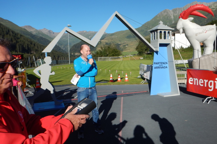 Der Morgen beginnt bilderbuchmäßig. Die aufgehende Sonne am wolkenlosen Himmel vertreibt die nächtliche Bergfrische sehr schnell. Beim Sportzentrum Sedrun mit der Mehrzweckhalle Dulezi wird es ohne Hektik geschäftig. Alles ist klar ausgeschildert, Fragen kommen keine auf.