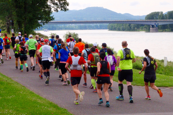Eine nette Pointe beinhaltet schon der Name des Rheinsteig-Extremlaufs, wenn wir einmal den Zusatz „extrem“ weglassen. Denn nach zehn Jahren mit 47 Marathon- und Ultraläufen gibt es für mich eine zunehmend peinlichere Frage: „Den Rennsteig bist Du doch sicher auch schon gelaufen?“ „Nein“ muss ich dann bis heute gestehen, denn es hat terminlich nie gepasst. Sagt man jedoch, man wäre schon den „Rheinsteig“ gelaufen, kommt bei den meisten Läufer selbst bei deutlicher Aussprache meist „Rennsteig“ an und man muss dann erst einmal erklären, dass es auch im Westen der Republik einen herausfordernden Landschaftslauf mit ähnlichem Namen gibt: Den „Rheinsteig-Extremlauf“, zwar statt 73 oder 42 Kilometer nur 35 Kilometer lang, dafür aber mit einigen steilen Aufstiegen und zumindest drei fast schon „halsbrecherischen“ Abstiegen!