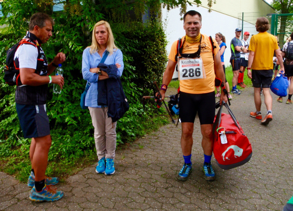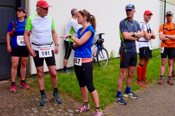 Schön für mich ist, dass aus unserer Behörde Ex-Kollege Klaus, der erst mit gut 60 Jahren mit Wettkämpfen begonnen hat, dabei ist – er wird mit einer Superzeit von 4:22 finishen –, aber auch meine junge Kollegin Laura, obwohl sie sich in den letzten Wochen nicht ganz fit gefühlt hat. Ein anderer junger Kollege ist demgegenüber superfit, denn er bereitet sich mit einem Laufpartner gerade auf den diesjährigen Transalpine Run vor – man sieht es an ihrer gewissenhaften Vorbereitung auf unseren heutigen Lauf. Mich hingegen plagt seit dem Prag-Marathon vor drei Wochen ein Reizhusten und ich bin unsicher, ob ich dem RHEX heute überhaupt gewachsen bin; der Arzt fand meine Teilnahme „schon sehr grenzwertig“.