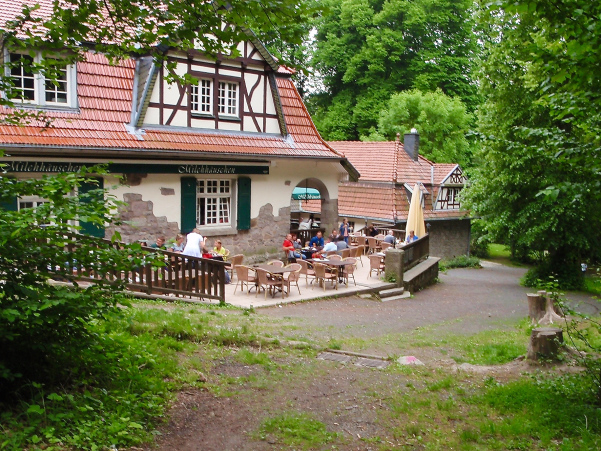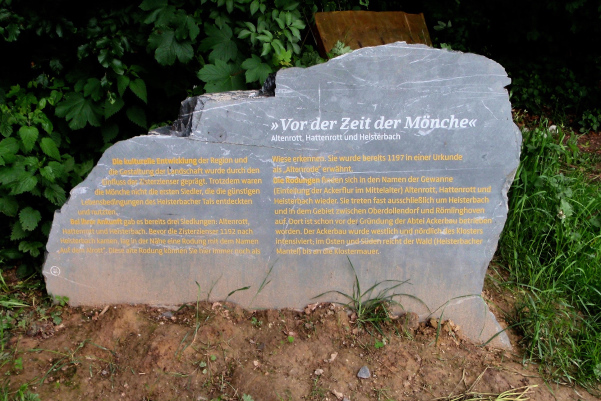 Bei der Bevölkerung ist der durch Steinbrüche überformte Berg schlicht der „Riesenschiss“, was irgendwie auch gut zu nationalsozialistischen Plänen für den Bau eines monströsen Denkmals im Gipfelbereich passt; als 1933 Reichspropagandaminister Goebbels zur Grundsteinlegung des Denkmals auf den Himmerich kam, wurde dafür durch das Mucherwiesental von Bad Honnef aus sogar eine Straße gebaut – eine Info für alle, die sich wundern, dass es im Himmerich-Bereich beim nahen Siebengebirgsmarathon weitab des Tales eine asphaltierte Straße zu belaufen gibt. RHEX-Läufer gelangen allerdings (leider) nicht in den Gipfelbereich des Himmerich, auf den es einen hübschen, wenn auch sehr versteckten Steig gibt. Aber in den Genuss dieser Straße kommen später auch sie.