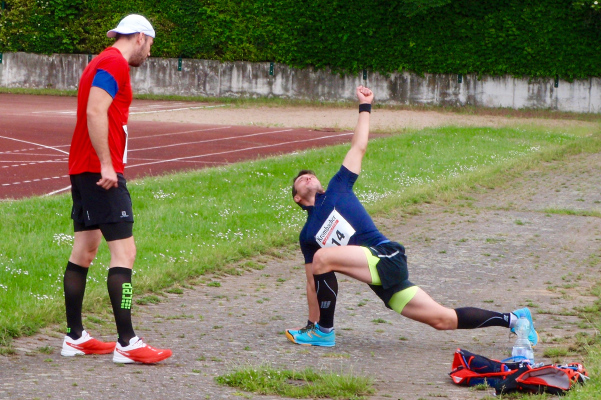 So nah vor dem Ziel sorge ich dann gern für einen schönen Zieleinlauf. Das Hochgefühl, jetzt hier zu finishen, gleicht dem bei weit „wichtigeren“, großen Marathonläufen. Auch wenn es heute „nur“ 35 Kilometer waren: Mit seinen acht Bergen empfinde ich den RHEX als tolle Leistung. Und im Ziel fällt mir wieder der Spruch ein, der mich auf dem gesamten Weg, vor allem aber während meiner ersten, schlappen Phase begleitet hat, nachdem ich ihn neulich irgendwo gelesen habe: Wichtig ist nicht die Zeit, die Du läufst, sondern in der Du läufst. Mit 5:20 Stunden war ich zwar arg lang unterwegs. Auch wenn ich zum Schluss sogar einige Läufer überholen konnte: Eine tolle Zeit habe ich damit zwar nicht erzielt, aber im Ziel geht es mir gut und ich bin nicht verausgabt. Ich habe den RHEX heute genossen.