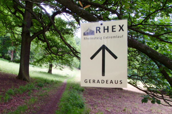 Da sich der Rheinsteig als „Premium-Wanderweg“ – von Bonn nach Wiesbaden über 320 Kilometer – sich möglichst in Rheintalnähe bewegt, führt er fortwährend bergauf und bergab, auf jeden Randberg über dem Tal hinauf, in jedes Seitental hinab. Vom Startort Beuel bis zum Ziel auf der Insel Grafenwerth in Bad Honnef sind es, immer das Rheinufer entlang, zwar nur 12,3 Kilometer, aber über insgesamt acht Berge werden daraus 35 Kilometer und ein fortwährender Wechsel von Auf- und Abstiegen, gelegentlichen Forststraßen, meist eher Forstwegen und häufig schönen, spannenden Trails, also unbefestigten Fußwegen. Interessanterweise verändert sich das Höhenprofil im Verlauf der Strecke: Gibt es am Anfang ein kurzweiliges Auf und Ab über Foveauxhäuschen, Kuckstein und den Weinberg Dollendorfer Hardt – gerade recht zum „Einlaufen“ –, so folgen danach die „großen Berge“ mit eher langen Auf- und Abstiegen, vor allem am Petersberg, Drachenfels, Löwenburg und Himmerich. Der Geisberg zwischen Petersberg und Drachenfels wartet hingegen mit den steilsten Hängen der gesamten Route auf, an denen es bei ordentlichem Regen – wie beim RHEX vor drei Jahren – schon sehr ungemütlich werden kann.