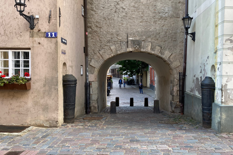 An der Esplanade die große orthodoxe Geburtskathedrale mit goldenen Kuppeln. Kurz danach eine Hauswand mit den Wappen der lettischen Städte und Gemeinden. Daneben der Pulverturm aus dem 17. Jahrhundert, in dem Sprengstoff gelagert wurde. Auch Zuschauer tauchen an der Strecke auf. Nicht wirklich viele, aber immerhin. Bei einigen habe ich den Eindruck, ihnen öfter zu begegnen. Die Dame in Pink gehört wohl zu dem Barfußläufer. Ungewohnt, diese Anfeuerung, aber sie macht richtig Spaß. Drei Kinder halten mir die Hand zum Abklatschen hin. Stopp. ich lasse das besser bleiben und rufe was von Covid und winke. Die Kinder scheinen das nicht recht zu verstehen.