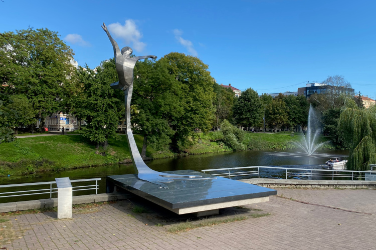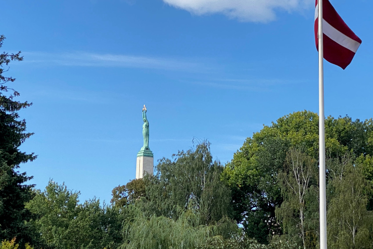 Vor uns, auf dem 1935 von Kārlis Zāle geschaffenen Freiheitsdenkmal steht eine 9 Meter hohe Allegorie der Freiheit. Am Sockel befinden sich Flachreliefs, die historische Ereignisse darstellen.