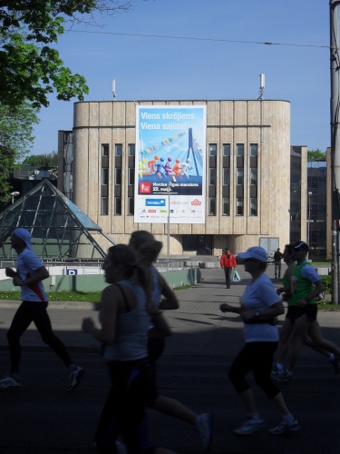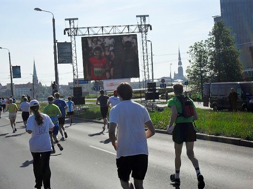 Ab da liefen wir dann eine Schleife in die entgegengesetzte Richtung, um dann auch noch die restlichen Stadtteile von Riga mit Fähr- und Frachthafen kennen zu lernen, aber auch die moderneren Siedlungen am Stadtrand. Hier war es dann für die restlichen Marathonläufer doch sehr einsam, aber das sollte sich bald ändern.