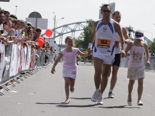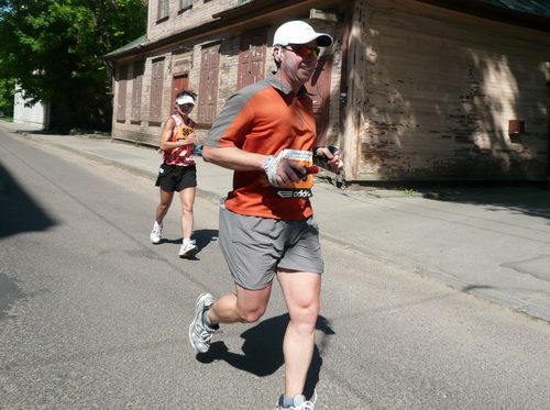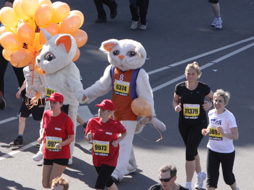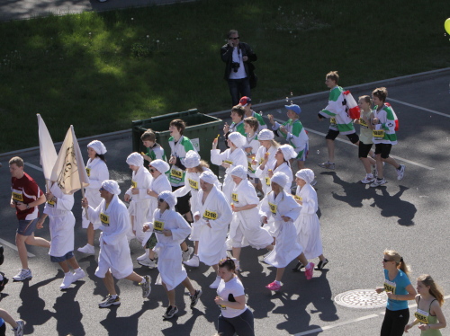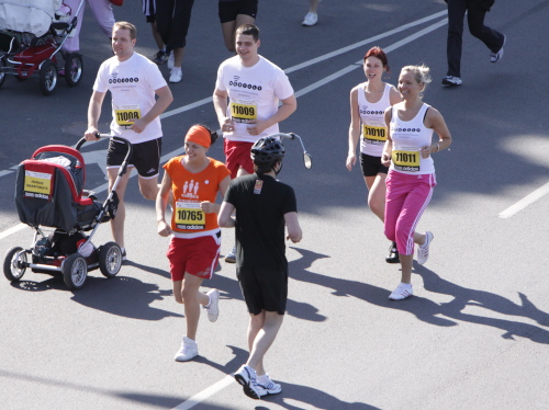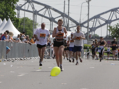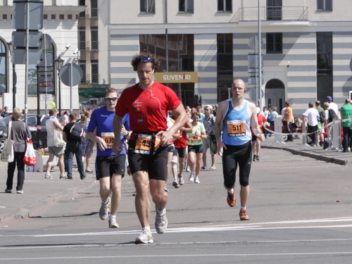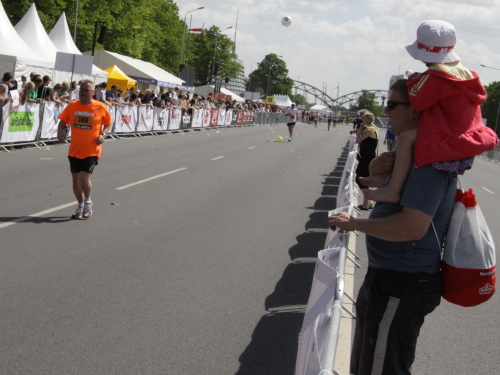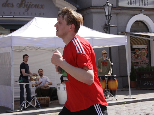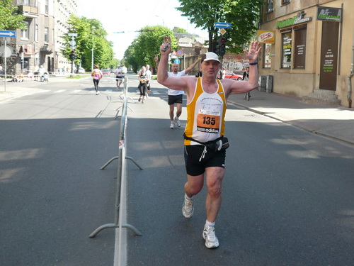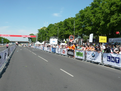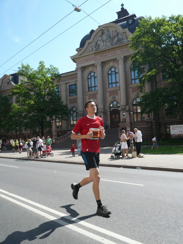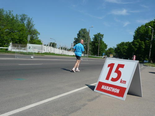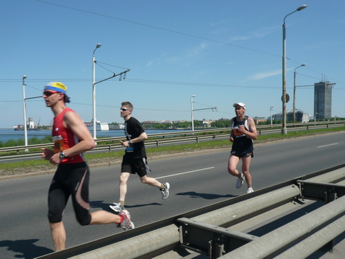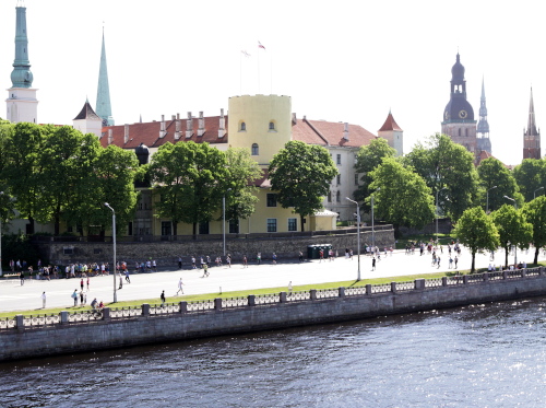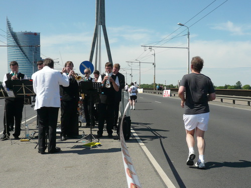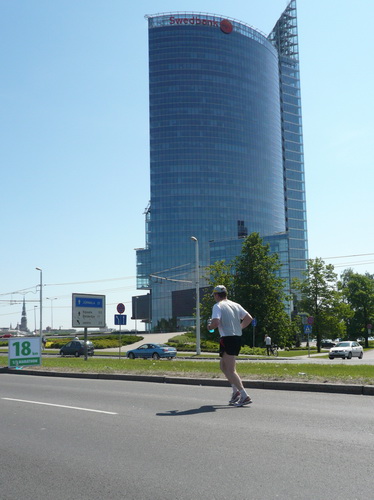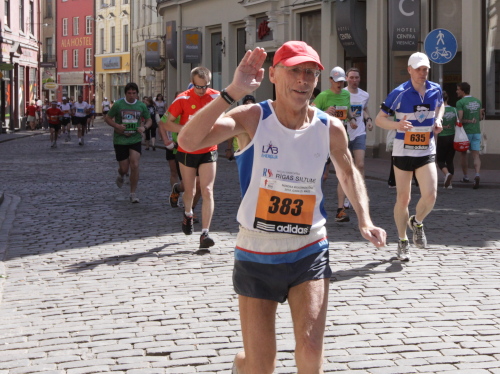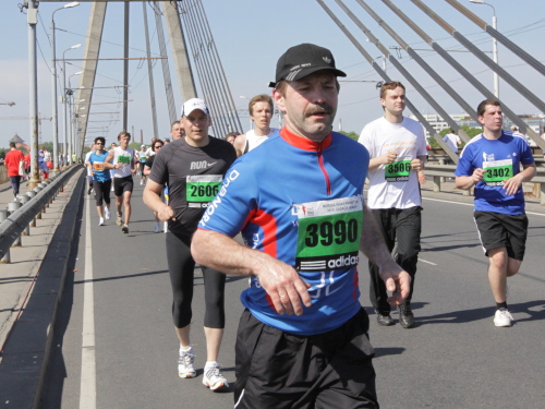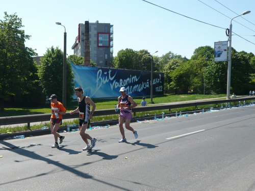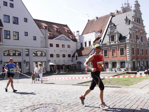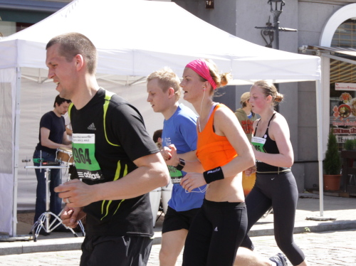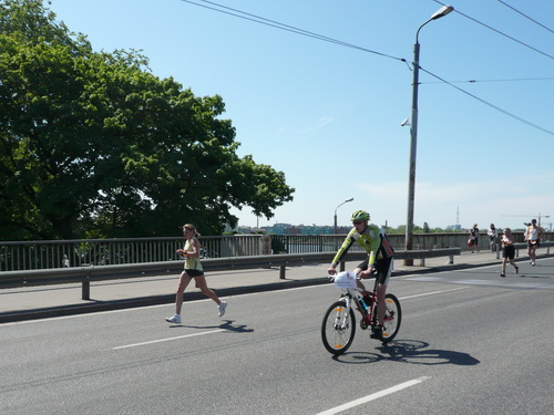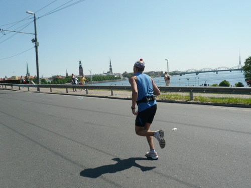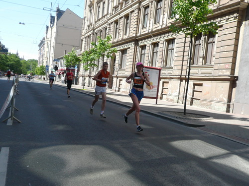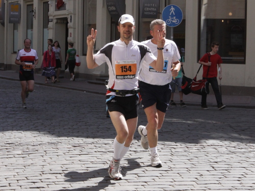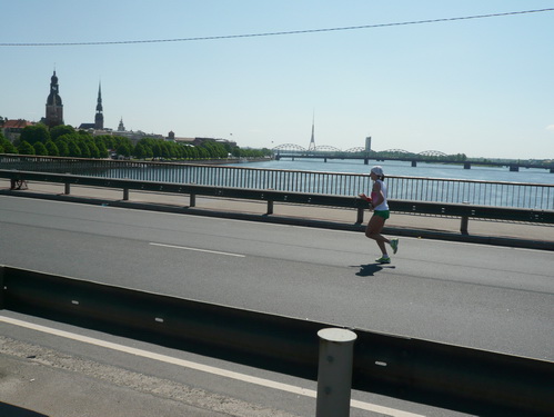 Ich mache mir so meine Gedanken, warum man sich wohl für 3 x 14 km entschieden hat und warum man nicht mehr durch die Altstadt läuft. Die Antwort ist einfach. Je weiter man in die Außenbezirke kommt, je unattraktiver wird die Strecke. Und um so durch die Altstadt zu laufen, wie wir das heute tun, müssen Bauarbeiter etliche Straßensperren entfernen und später wieder einbauen, was ein erheblicher Aufwand ist. Außerdem sind viele Gassen einfach zu eng, um Läufer und Begleitfahrzeuge aufzunehmen. Kurz, mehr Altstadt geht nicht und so gesehen haben die Organisatoren mit der jetzigen Strecke eine sehr gute Lösung gefunden. Nur wer von Riga lediglich die Marathonstrecke kennenlernt, schneidet nicht gut ab. Aber das ist immer so, in jeder Stadt.