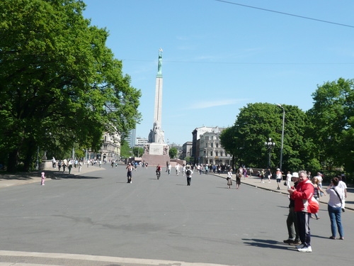 Wir kommen am Platz vorbei mit dem Freiheitsdenkmal. Davor steht seit 1924 die berühmte Laima-Uhr (Laimas Pulkstenis), der beliebteste Treffpunkt der Jugend und ein Wahrzeichen der Stadt, obwohl die Uhr schon immer nichts anderes als ein Werbeobjekt war - Laima ist der größte Schokoladenhersteller in Littauen.