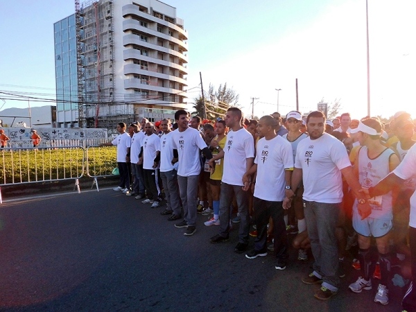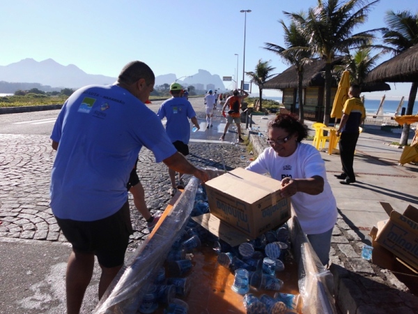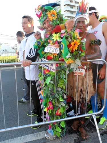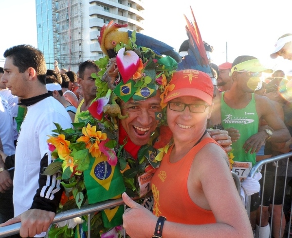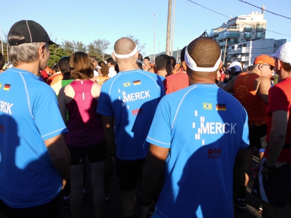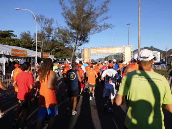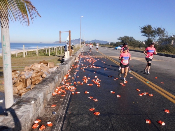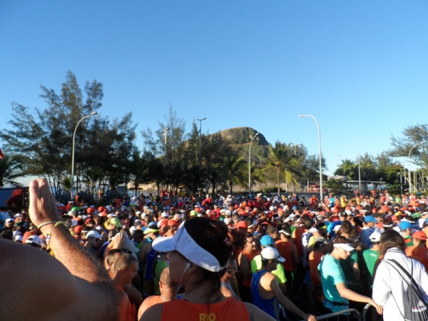 Wie liefen auf Barra de Tijuca zu und passierten den Start der Halbmarathonis – die inzwischen wohl schon im Ziel waren. Die Glücklichen! Seit Kilometer 8 hatten wir einige Getränkestellen passiert – an denen es auch ausreichend Getränke gab… Leider gab es keine Verpflegung. Mann, ich hatte vielleicht einen Hunger. Was hätte ich für eine Banane gegeben!