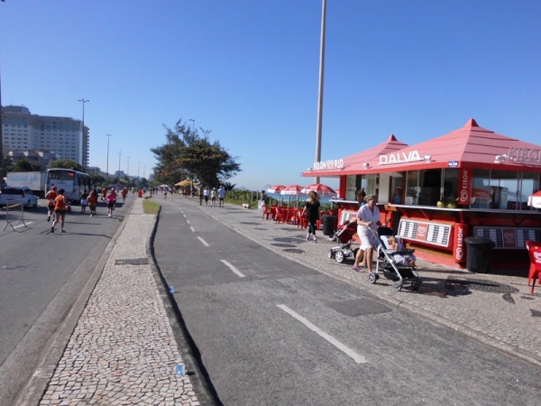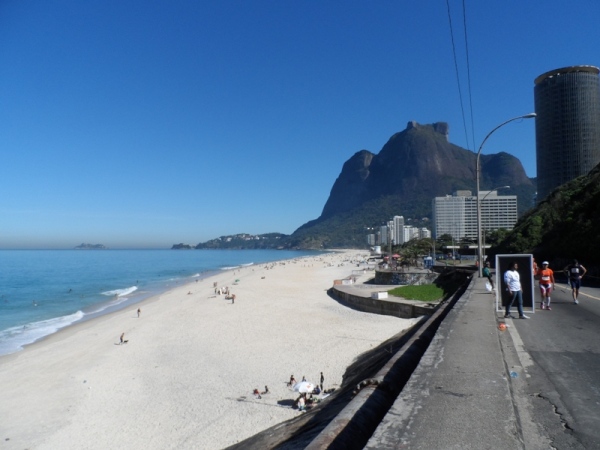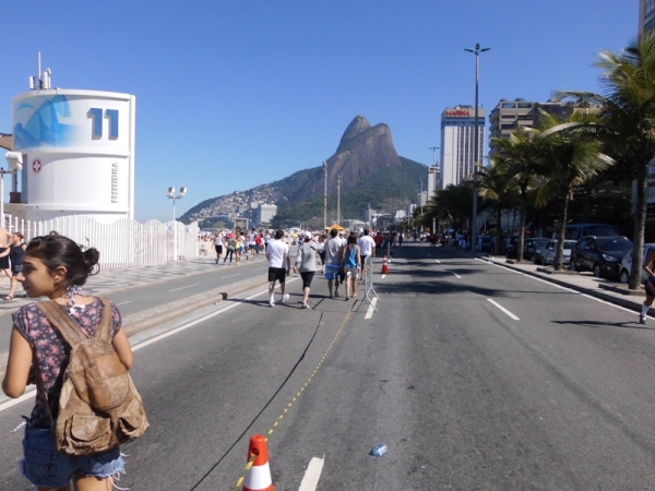 Nach etwa 30 Kilometern atmete ich durch. Wir hatten Leblon erreicht, dem sich übergangslos Ipanema anschließt. Für mich beginnt hier das „richtige“ Rio, hier kenne ich mich aus. Ich würde fast sagen, hier bin ich zuhause. Auch heute ist wie jeden Sonntag, der Strand gut belegt, unzählige Menschen sind auf der Promenade unterwegs. Leider interessiert sich kaum noch jemand für uns. Das mag vor etwa zwei Stunden, als die Elite hier vorbeikam, noch anders ausgesehen haben. Ich hätte nicht so viel fotografieren sollen …