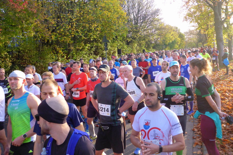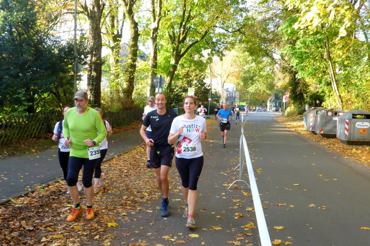 Die Strecke führt uns über breite Straßen mit zwei kleinen Anstiegen Richtung Lennep. Die Halbmarathonis stürmen davon, einige der Ultras schonen ihre Kräfte und gehen konsequent auch schon jetzt die Steigungen hoch. Wir starten bei 15 Grad und strahlenden Sonnenschein, nur die Gebäude schützen uns vor der noch tief stehenden Sonne. Zwei Nächte zurück hat die Stadt Werl gerade den Rekord der wärmsten Oktober Nacht Deutschlands nach NRW geholt: Mit 18,5 Grad wurde der Titel Lahr in Baden Württemberg abgenommen, wo er seit 1966 mit 16,7 Grad verweilte.