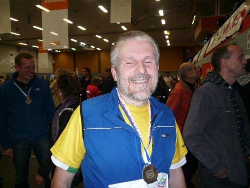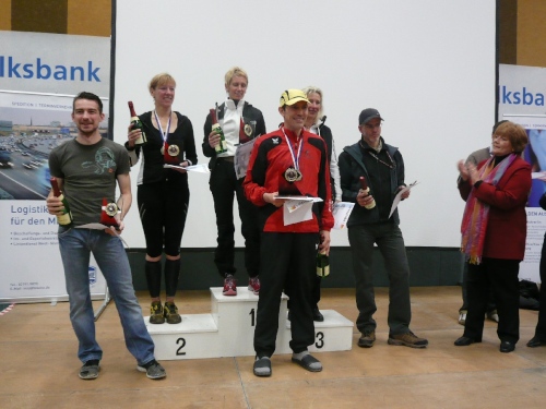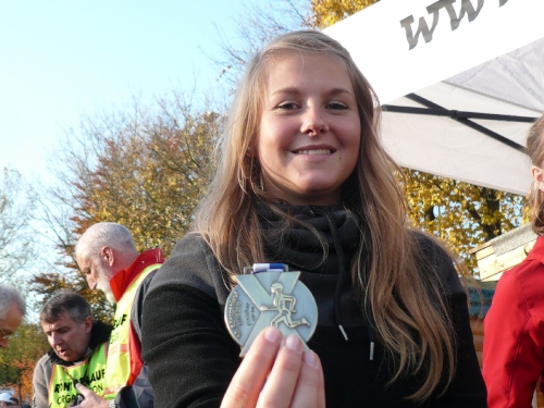Im Ziel wird eine spezielle Medaille übergeben. Verpflegung ist reichlich. Als Spezialität wird eine Marathonschnecke angeboten. Schaut aus wie eine Nussschnecke, jedoch mit Sesam, Honig, Marzipan und Rosinen. Dazu ein Erdinger.