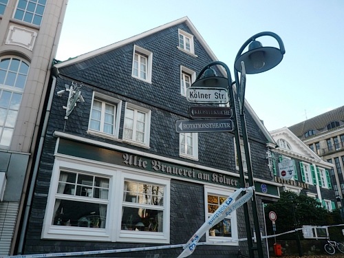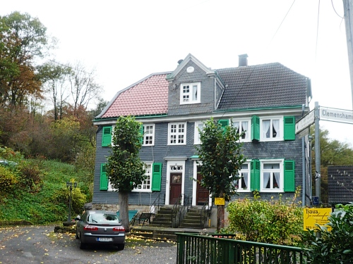 Die typische bergische Bauweise sind das schwarze Fachwerk mit weißen Fenstern, gekalkten „Gefachen“ und grünen Fensterläden. Ganz typisch ist das beim Deutschen-Röntgen-Museum zu sehen, an dem wir vorbei laufen. Der Namensgeber dieser Veranstaltung Wilhelm-Conrad Röntgen erhielt durch seine Erforschung der Röntgenstrahlen (er nannte sie X-Strahlen) 1901 den Nobelpreis für Physik.