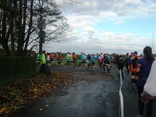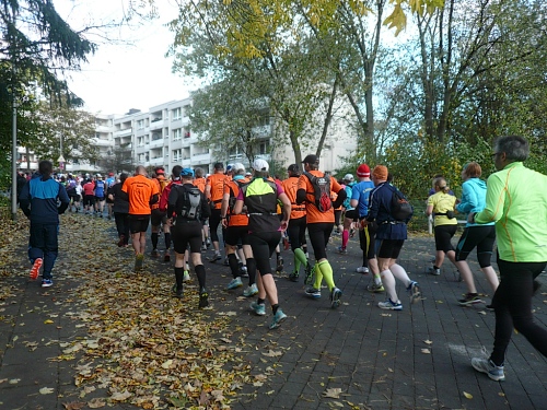Es ist kurz vor 8:30 Uhr und ca. 2000 Teilnehmern finden sich am Start ein. Nach einer Ansprache werden wir dann alle gleichzeitig auf die Strecke geschickt. Durch die vielen Starter ist es zwar eng, aber es gibt kein Gedränge beim Loslaufen. Die Marathonis und Ultras sind eigentlich immer vernünftig und gehen ihre langen Strecken immer ruhig an. Es gibt aber einige Stöckchenschwinger, die sich unter die Läufer mischen, leider.