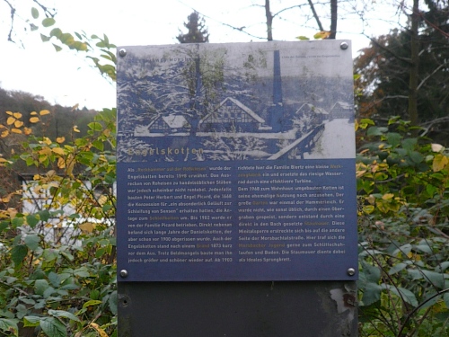 Der Engelskotten wurde schon im 16. Jh. als Reckhammer erbaut. Hier wurde aus Roheisen durch Recken Stabeisen hergestellt. Später wurde er ein Schleifkotten für Sensen. Heute ist der abgebrannte Kotten größer und schöner zu einem Wohnhaus umgebaut.