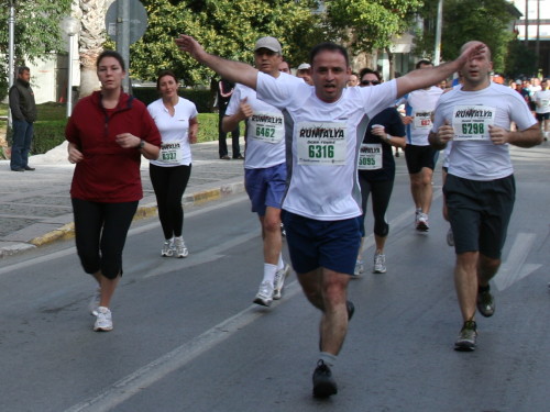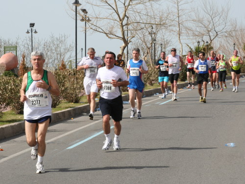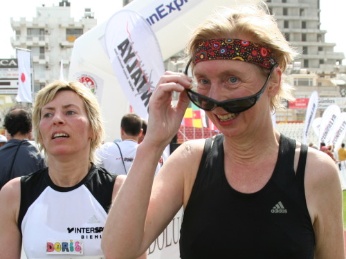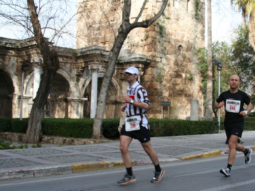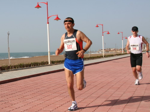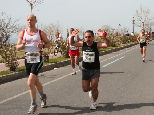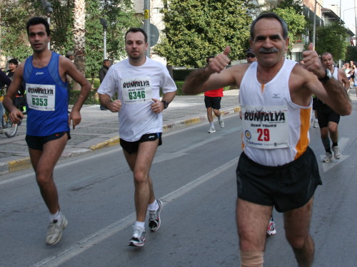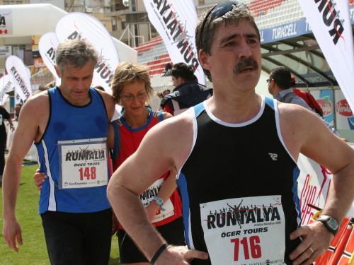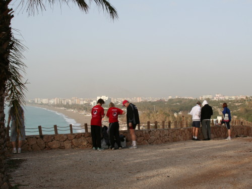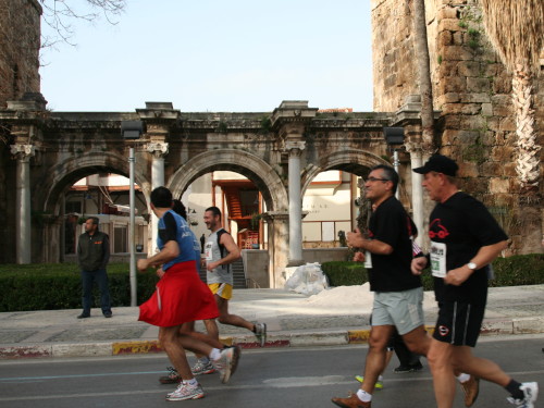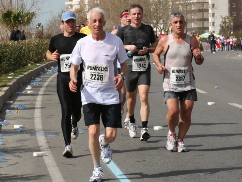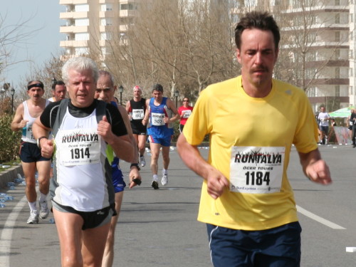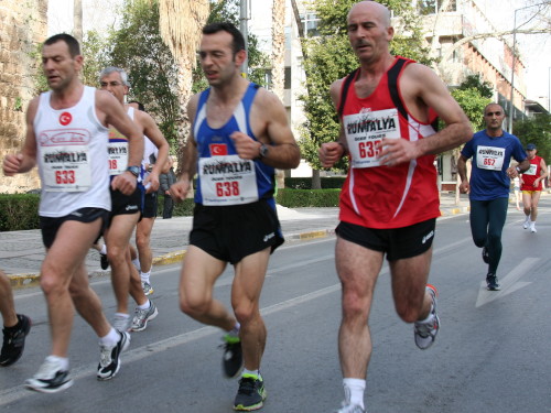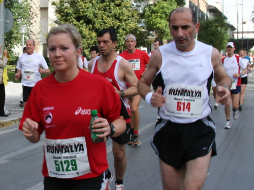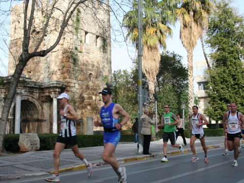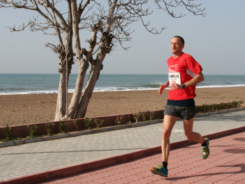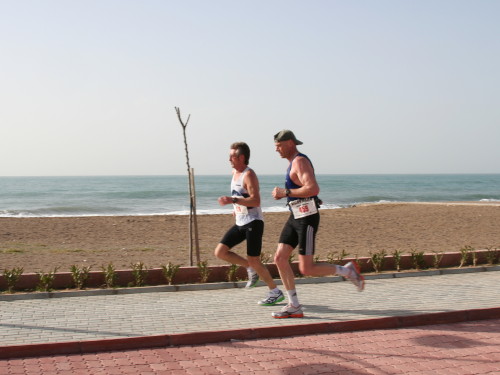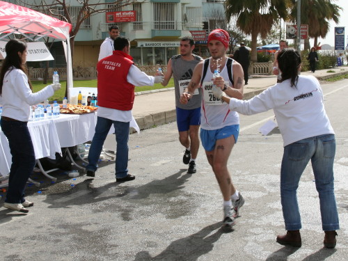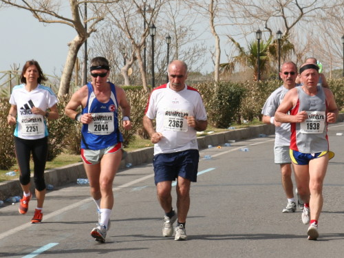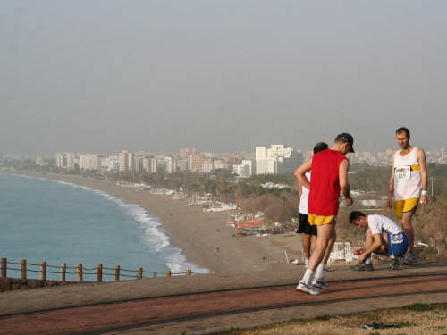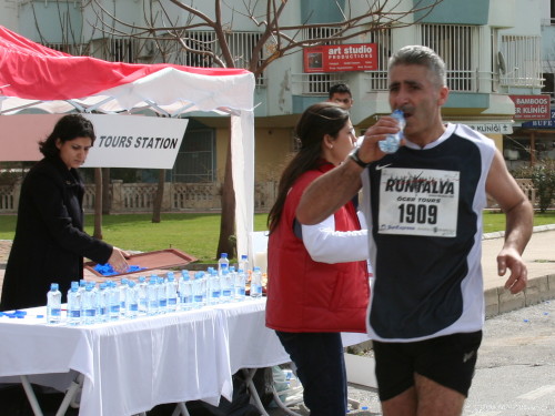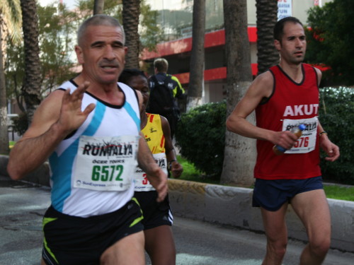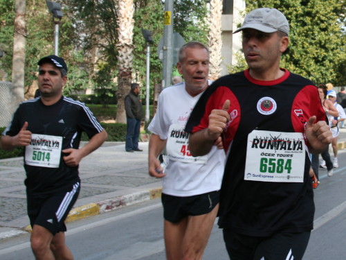 Kilometer 17, wir sind auf der Straße nach Lara Beach zu den großen Themenhotels. Auf der Gegenbahn kommen mir scharenweise die Marathonis entgegen, die Schnellsten sind allerdings schon vorbei. Entspannt grüßt man sich, fragt wie’s geht und wünscht Glück.