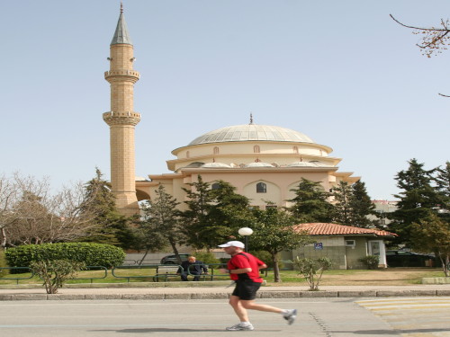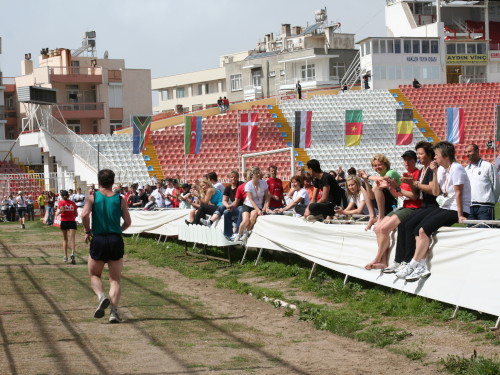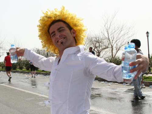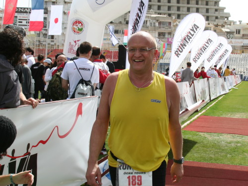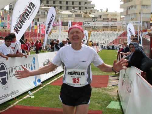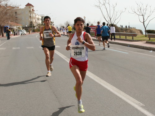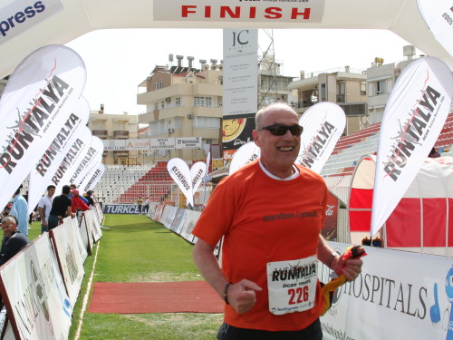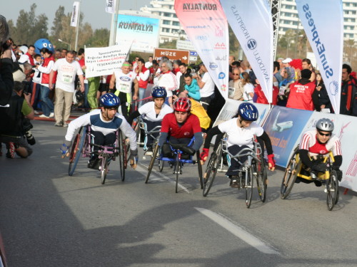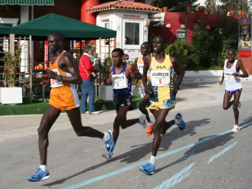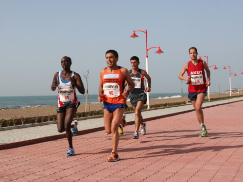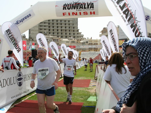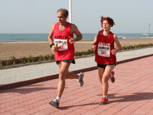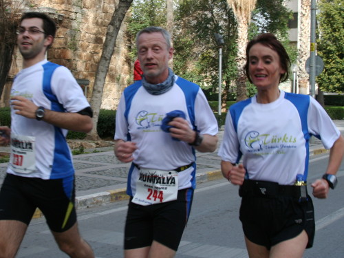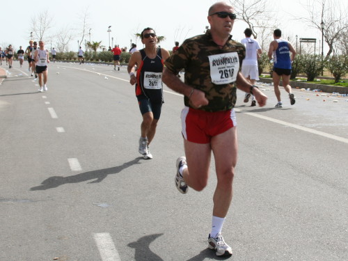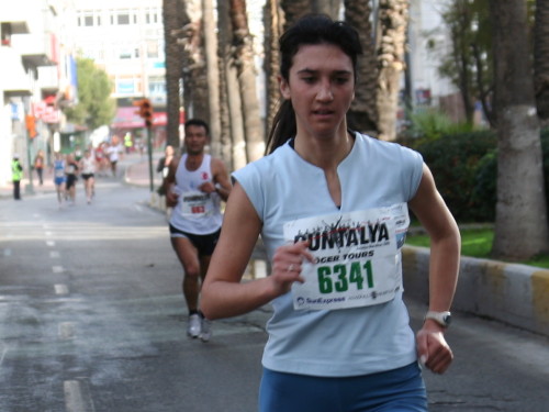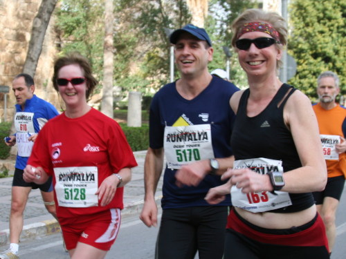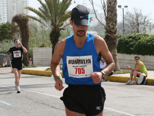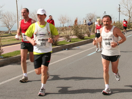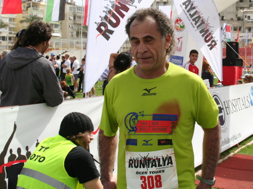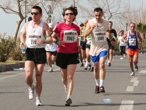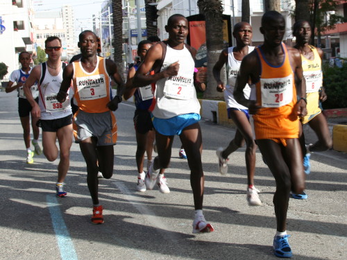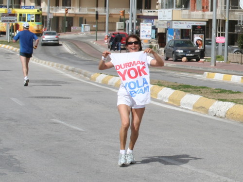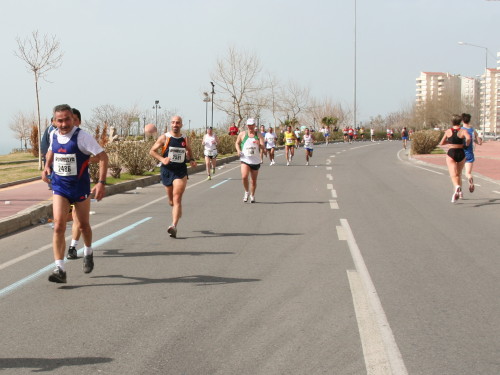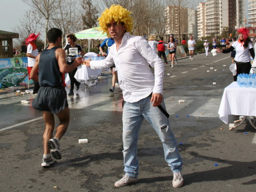 Kilometer 17, wir sind auf der Straße nach Lara Beach zu den großen Themenhotels. Auf der Gegenbahn kommen mir scharenweise die Marathonis entgegen, die Schnellsten sind allerdings schon vorbei. Entspannt grüßt man sich, fragt wie’s geht und wünscht Glück.