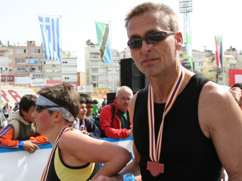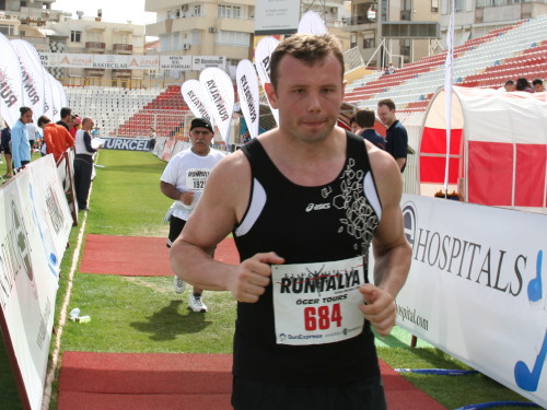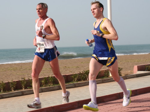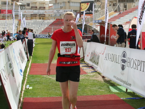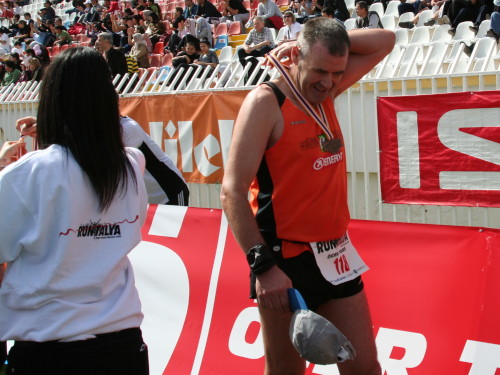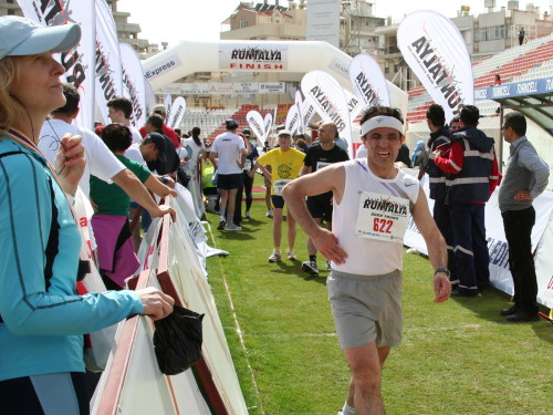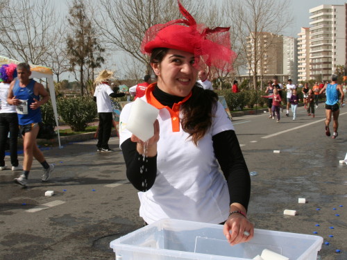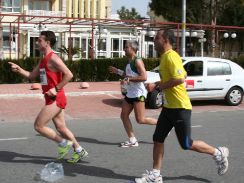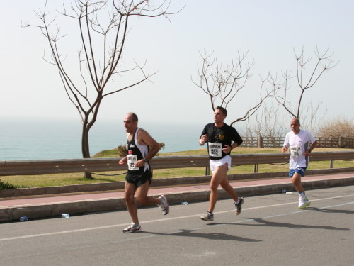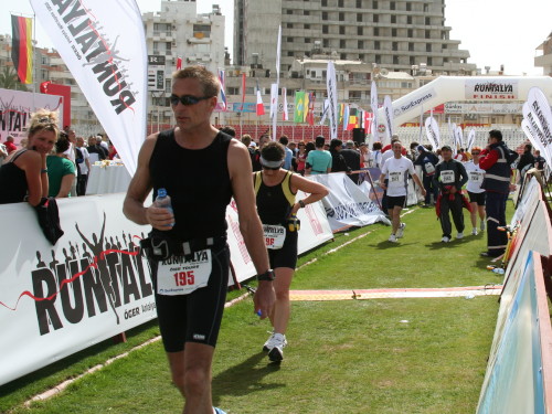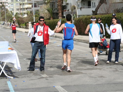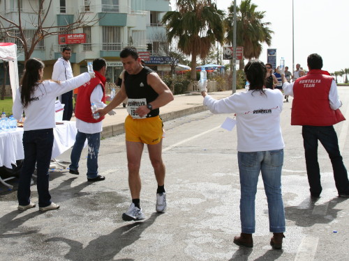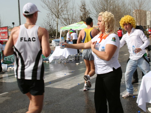 Es ist warm geworden, um die 20 Grad mögen es sein. Zum Glück kommt alle 2,5 Kilometer eine Getränkestelle mit Wasser und zwischendurch auch mit Iso, Orangen, Apfel und Bananen. Ich bin nur am Trinken und greife mir auch immer einen Schwamm. Gleich haben wir auch die Steigung bei Lara hinter uns und schon ist etwas Wind spürbar, der die nasse Haut angenehm kühlt. Also Probleme macht mir die Wärme nicht. Es sind eher die Kilometer. Der Marathon kommt zu früh. Ich kann zwar alles laufen, muss keine Gehpausen machen, aber es ist schwer, verdammt schwer. Aber die jetzt aufkommende Gewissheit, dass ich es schaffen werde, macht Kräfte frei. Mein iPod bleibt in der Tasche. Ich genieße mein Comeback pur.
