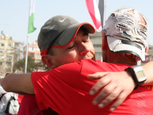 Kinder stehen an der Straße, feuern mich an. Ein Junge nimmt meine Hand und läuft mit mir. Seine Schwester rennt hinterher: „Where you come from?“ „Deutschland.“ „Ah, Deutschland. Guten Tag, Deutschland“, sagt sie. Ein Stückchen laufen sie noch mit, dann lässt der Junge meine Hand los und bleibt mit seiner Schwester zurück.