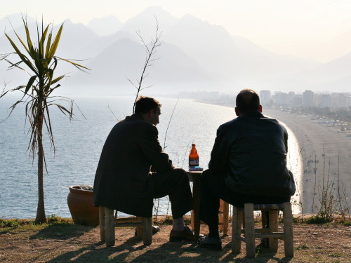 Gestern auf einer Bootsfahrt entlang der Küste: An Bord des kleinen Schiffes sind lauter Türken, aus den Lautsprechern kommen einheimische Klänge. Die junge Kapitänstochter fragt, ob mich die Musik stört. Nein, tut sie nicht, ich bin in der Türkei. Wir legen ab. Plötzlich fangen zwei jüngere Männer an zu tanzen. Dabei strahlen ihre Augen vor Glück und Freude. Als ich meinen Fotoapparat herauskrame, legen sie noch einen Zahn zu. Lebensfreude pur.