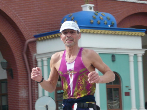 Genau vor dem jetzt bald fertigen „Istanbul“ ist die Marathonwende. Also das gleiche noch einmal, jetzt umgekehrt. Vor dem „Sherwood Breezes“ feuern noch immer Robin Hood, ein paar Trommler und erstaunlich viele Zuschauer die Marathonis an, bei der nächsten Getränkestelle sind es grell geschminkte und kostümierte Gestalten.