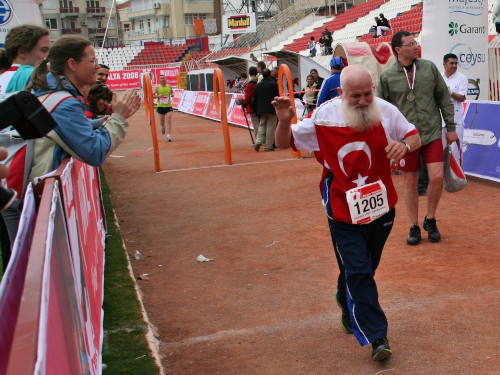 Überhaupt: mich umgeben schon die ganzen Tage nur fröhliche und freundliche Menschen. Unzählige Male werde ich auf der Straße oder am Strand von mir wildfremden Menschen angelächelt und gegrüßt. Einmal sprechen mich bei einem kleinen Trainingsläufchen drei Türken an. Sie sind auch in Sportklamotten, aber noch gemütlicher unterwegs als ich. Sie sprechen kein Deutsch, ich kein Türkisch. Egal, wir verstehen uns sofort. Sie wollen wissen, ob ich am Sonntag Marathon laufe. Mein Nicken wird mit großer Bewunderung quittiert. Sie selber laufen den Halben, geben sie mir mit Händen und Füßen zu verstehen. Ich mache Komplimente und wir wünschen uns viel Glück. Ich mache jede Wette, bevor es den Runtalya gab, hatten die drei mit Laufen nichts am Hut.