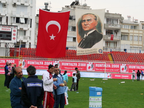Erstaunlich viele Zuschauer haben sich auf dem Startgelände versammelt. Die Stimmung ist hervorragend. Dann wird die Nationalhymne angekündigt. Plötzlich ist es still und alle Türken stehen stramm, bis der letzte Akkord verklungen ist. Der Bürgermeister schreitet die erste Startreihe ab. Die Türken drängt es nach vorne, sie wollen auch einen Händedruck.