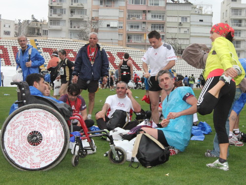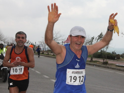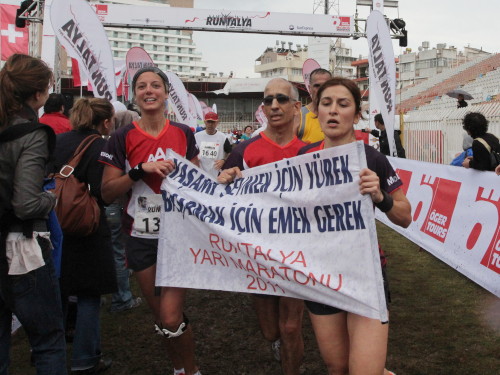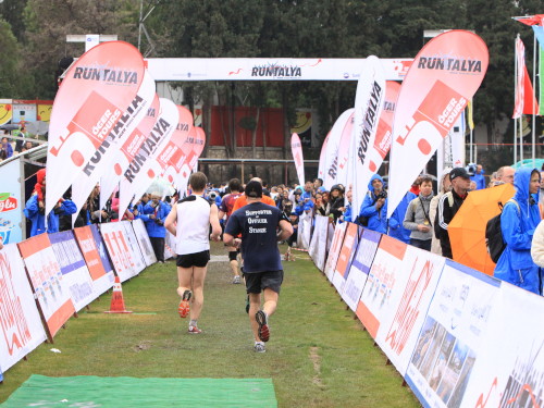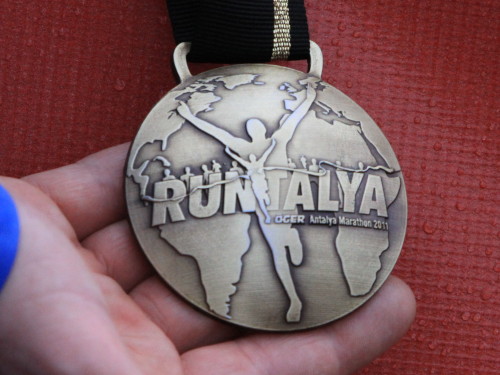 Der Empfang im Stadion ist ausgesprochen herzlich. Ein Zielmoderator begrüßt die Ankömmlinge, im Tanzschritt wiegend bekomme ich die Finisher-Medaille umgehängt, ein schöner Ausklang für ein wahrlich eindrückliches Marathonerlebnis. Nach fünf Mal “Runtalyas” mit Traumwetter war heute zwar “Raintalya” angesagt, aber in meiner Erinnerung wird mir der Antalya-Marathon als toporganisierte, fröhliche Laufveranstaltung bleiben, die nicht ohne Grund zunehmend viele treue Fans hat, die sich alle Jahre wieder der läuferischen Herausforderung an der türkischen Südküste stellen.
