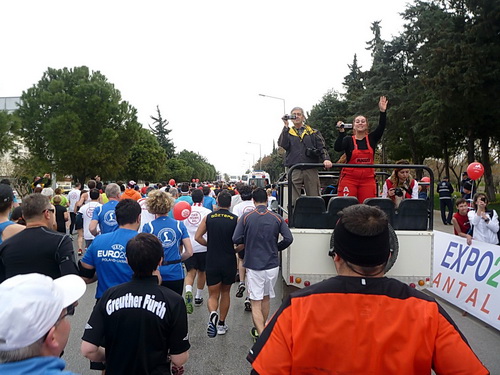 Ein Hundefängerauto steht auf der Rennstrecke, die Tölen kläffen im Kofferraum und warten auf ihre Kastration. Tatsächlich treibt die Staatsmacht den Hundefänger im nahen Cafe auf und wir können ohne Drohkulisse unseren Lauf antreten.