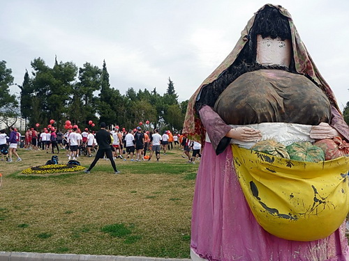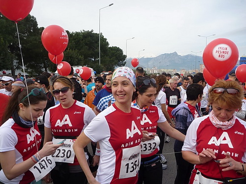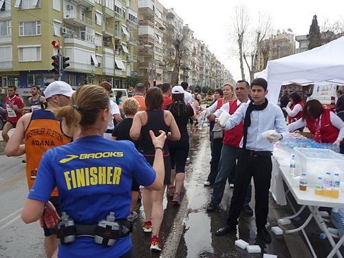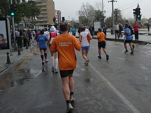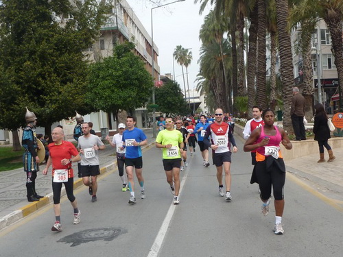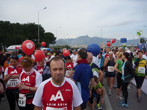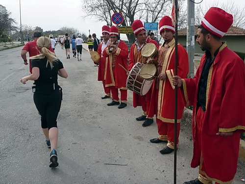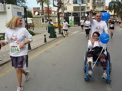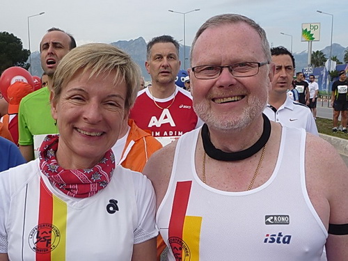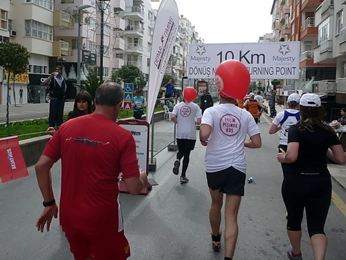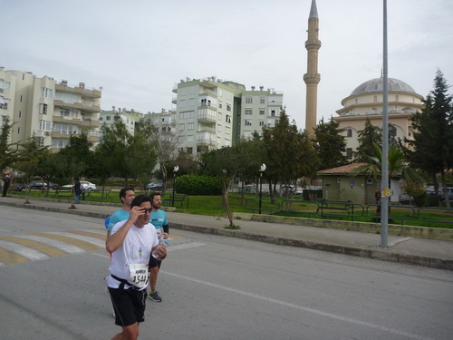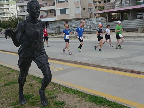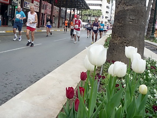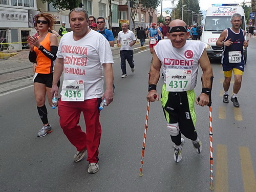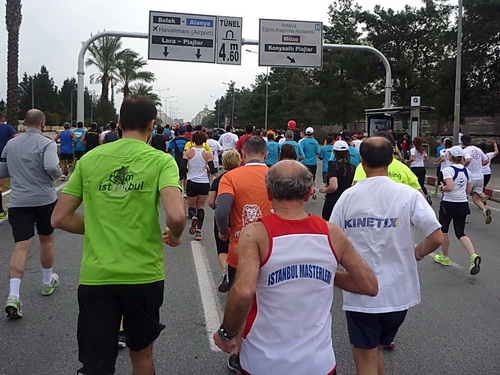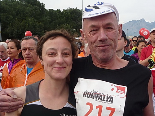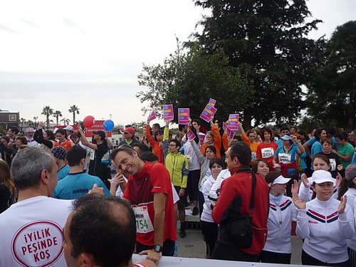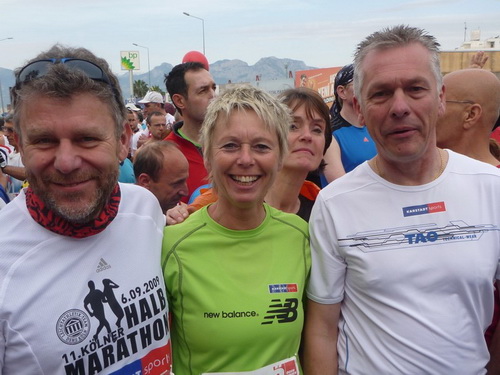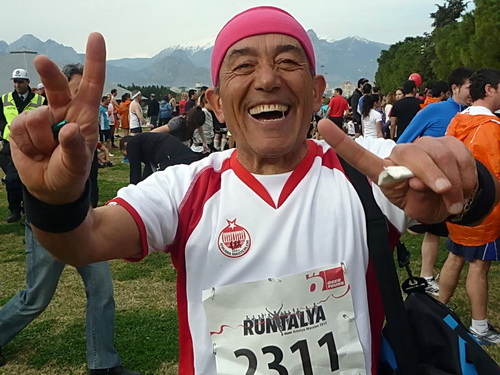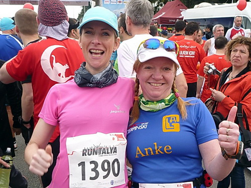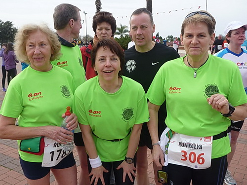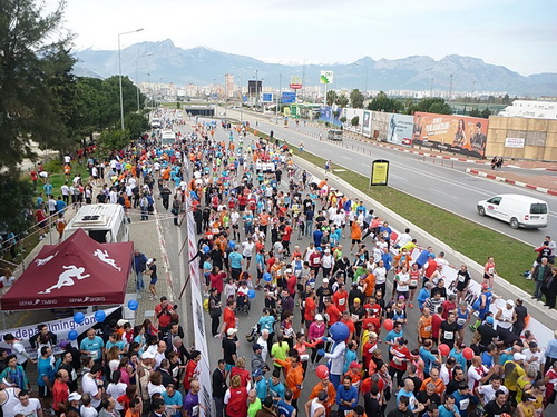 Überall deutsche Winterflüchtlinge. Der Lauftag bietet heute 24 Grad. Die Uferstraße, auf der unser Pumuckl barfuss läuft, wird am Montag witzigerweise neu asphaltiert werden. Thorsten läuft auch als Pumuckl, sonst als Robin Hood, aber sein Bogen wurde nicht in den Flieger gelassen. Martina hat beide Hände verbunden, sie ist gestern beim Training gestürzt. Uwe, der Ideengeber des Antalya Marathons wird ihr das Wasser reichen müssen.