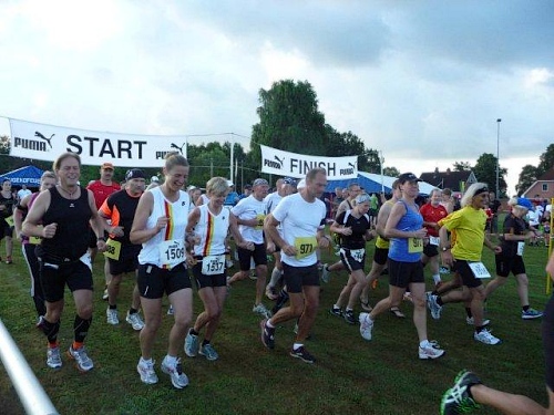 Sonntagmorgen heißt es also früh aufstehen. Glücklicherweise hat sich unser Wirt bereit erklärt, uns schon um 6 Uhr ein Frühstück anzubieten. So können wir uns gut gestärkt auf den kurzen Weg nach Wellen machen. Als wir dort ankommen, herrscht auf dem Sportplatz bereits ein reges Treiben. Fast 200 Teilnehmer haben sich für die unterschiedlichen Distanzen gemeldet, davon 67 Marathonläufer. Diese Zahlen genügen dem Veranstalter, um hier die lange Tradition aufrechtzuerhalten. Nach dem Abwärtstrend der letzten Jahre gehen die Teilnehmerzahlen nun wieder nach oben.