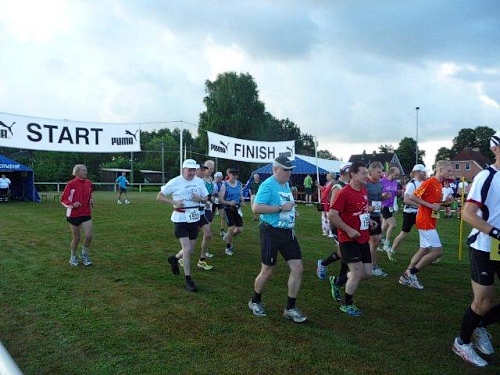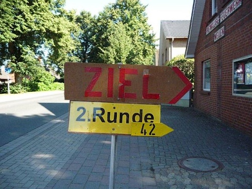 Wie der Veranstalter selbst auf seiner Homepage schreibt, ist hier auf sympathische Weise wohl die Zeit stehen geblieben. Der Sportplatz dient als Start- und Zielpunkt und befindet sich ziemlich genau in der Ortsmitte. Das Clubhaus mit der kleinen Sporthalle dient zum Umkleiden und Duschen. Bei Bedarf kann man hier sogar übernachten. Auf der Rasenfläche sind bereits die Start- und Zielbanner aufgespannt. Da kann ich ja dem morgigen Lauf gelassen entgegensehen.