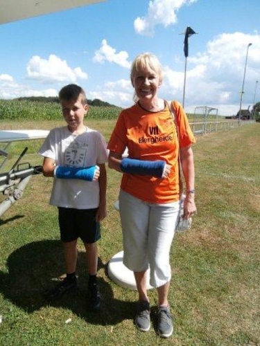 Inge und Christiane haben sich zum 5 km Lauf angemeldet. Unglücklicherweise hat sich Inge vor 14 Tagen beim Training durch einen Sturz die Hand gebrochen. Da sie noch den Gipsverband tragen muss, ist eigentlich nur Walken möglich. Aber „Dabei sein ist alles“.