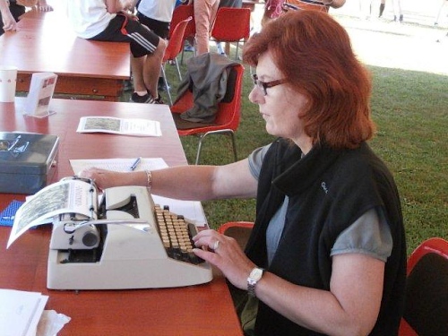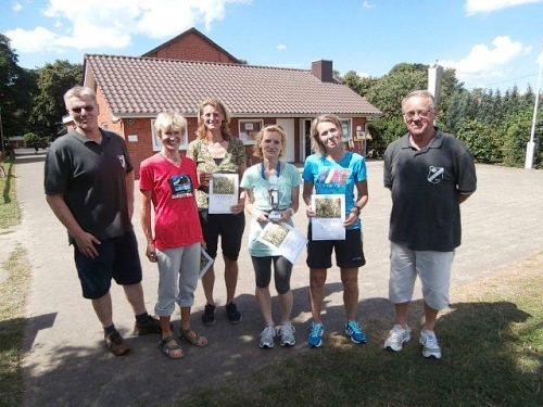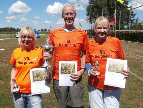 Natürlich lassen wir uns die legendäre Urkunde nicht entgehen. Für 3 Euro erhält man hier auf Büttenpapier eine schöne Urkunde, welche noch mit einer Adler-Plakatschreibmaschine getippt wird. Die bekommt einen Ehrenplatz in meiner Sammlung. Auch den Erinnerungspokal lassen wir uns nicht entgehen, wird er uns doch noch lange an den schönen Lauftag in Wellen erinnern.