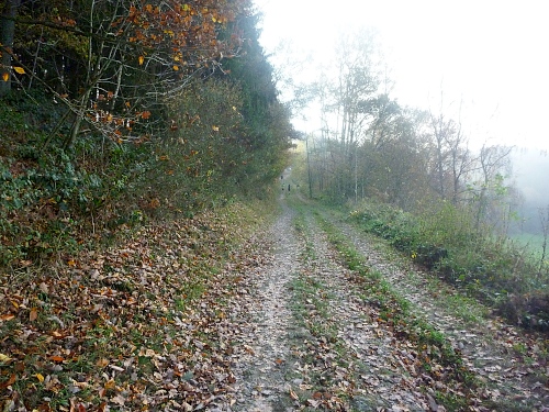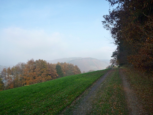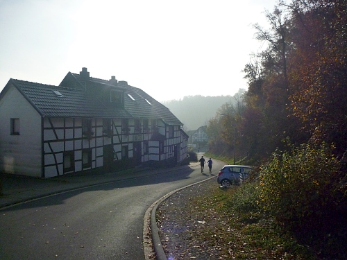 Bei km 23 laufen wir unterhalb des Simonsley vorbei. Simon Kremer besaß im 17. Jahrhundert die Schürfrechte für die Eisenhütte (Ley = Felsen). Es gibt noch Stollen, die zugänglich sind, ich werde also wiederkommen.