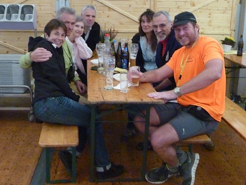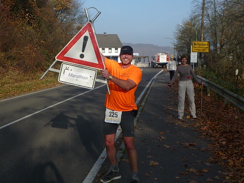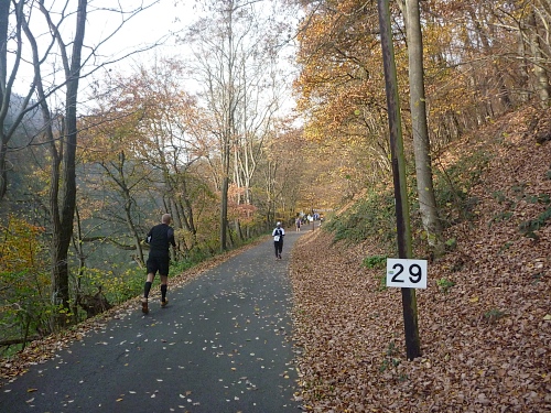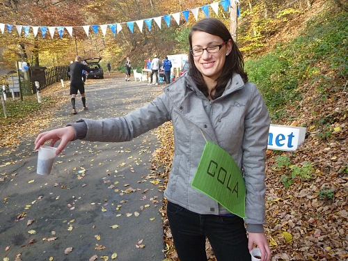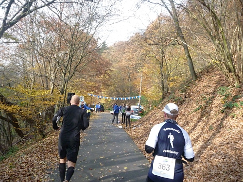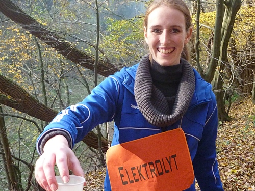Immer wieder laufen wir in diese Buchten rein, ein wenig demotivierend, da man so die Strecke als besonders lang empfindet. Als wir den Backesberg bei km 27 umrunden, schallen uns die neuesten Hits entgegen, das ist unvorstellbar scharf. Bei einen ganz bestimmten läuft es mir eiskalt den Rücken runter. Bis zum Jugendferienheim (km 29), dem Sitz des DJ’s, ist es noch ein weiter Weg, aber der Sound ist unübertrefflich! Mädchen mit Namen „Elekrolyt“, „Cola“ und „Wasser“ begrüßen uns. Die super Stimmung begleitet uns noch weitere 2 Kilometer bis zur nächsten Biegung.