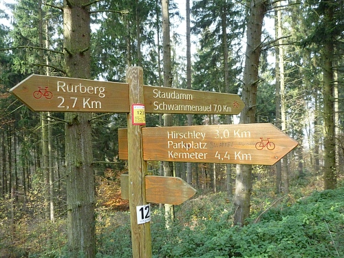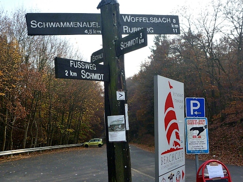 Oben über den Kermeter verlief die Römerstrasse. Reste von über 1000 Kohlemeilern aus dem Mittelalter sind anhand halbkreisförmiger Stellen erkennbar. Knapp unter dem Laub sind Holzkohlereste zu finden. Ein Metalldetektor würde hier viel ans Tageslicht befördern, doch dies ist im Nationalpark verboten.