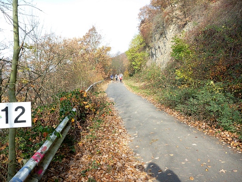 Bei km 8 im Wasser ein Bunker des Westwalls „Vorstellung Aachen“. Der Westwall (630 km) wurde von den Alliierten Siegfried-Linie genannt, bestand aus über 18.000 Bunkern und Stollen. Der Westwall hatte keine strategische, sondern eine propagandistische Funktion, wurde ab 1938 gebaut, um die Auflagen des Versailler Vertrages zu brechen.