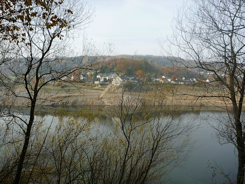 Bei km 18 ist die Halbinsel Tonsberg, darauf eine Römische Befestigung, ein schmaler Weg führt zur Ruine, die auch eine Jagd-und Liebeshütte vom Kaiser Karl sein könnte.