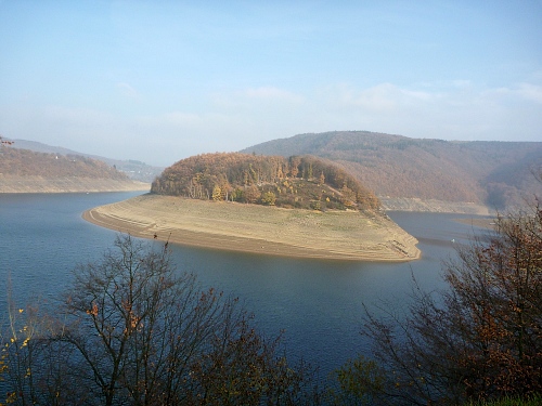 Die Landzunge Schlitterley bei km 15 trennt den Schwammenauelsee vom Rurtalsperrrensee, den wir nun umrunden.